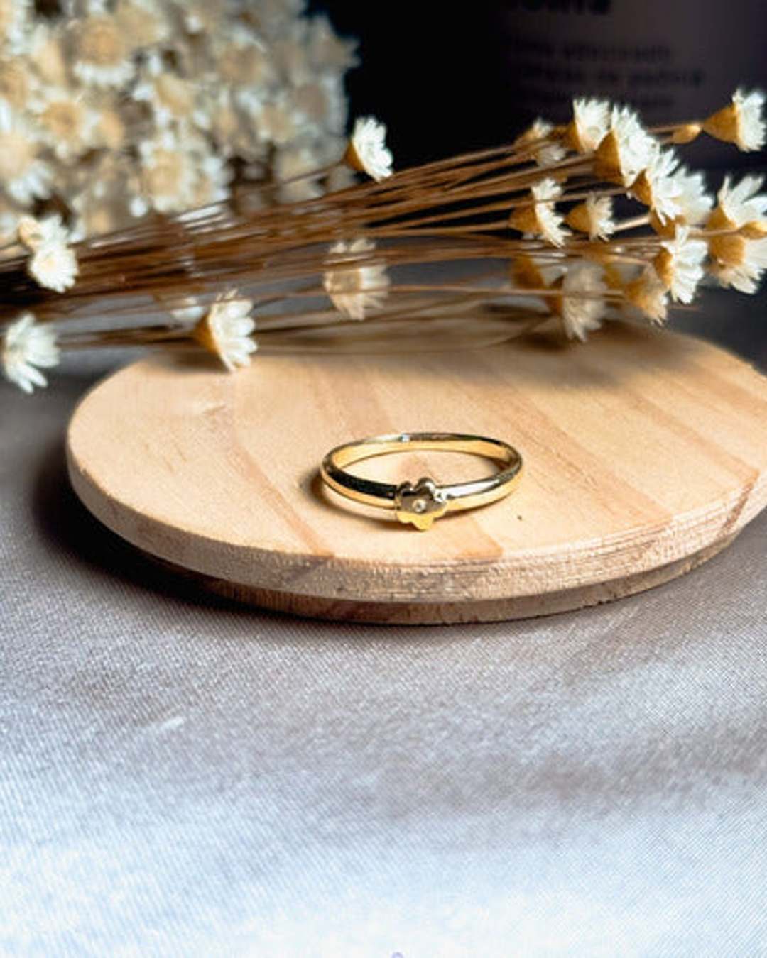 Anel Falange Flor Ouro Amarelo Diamante