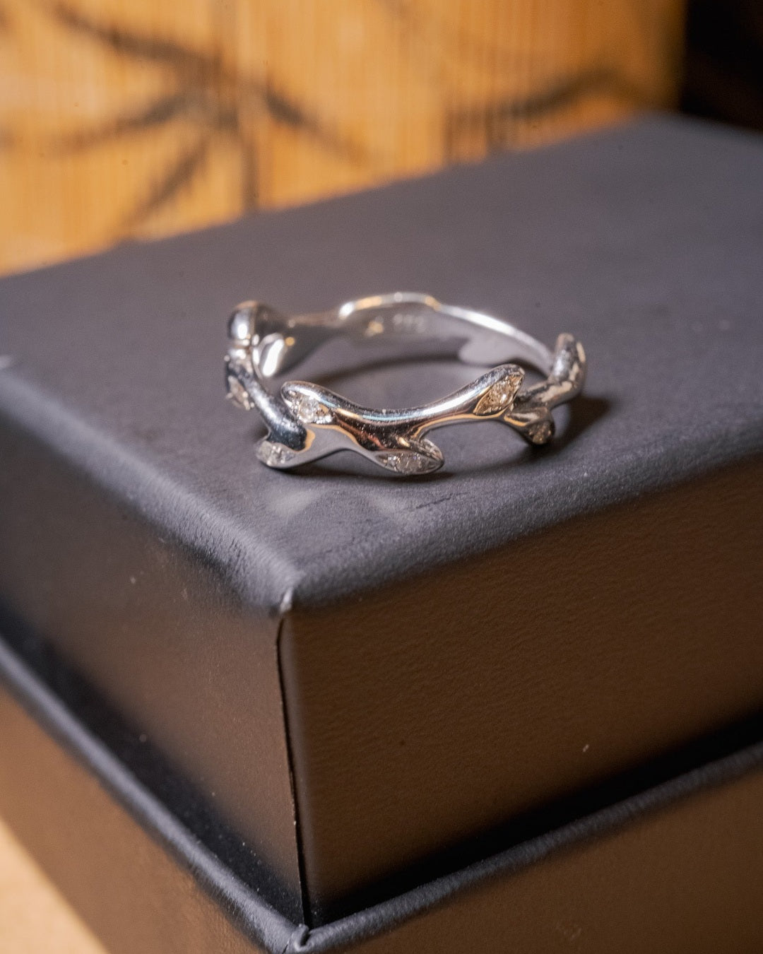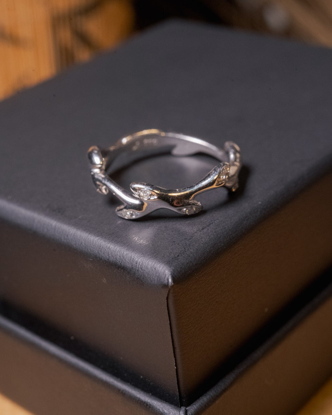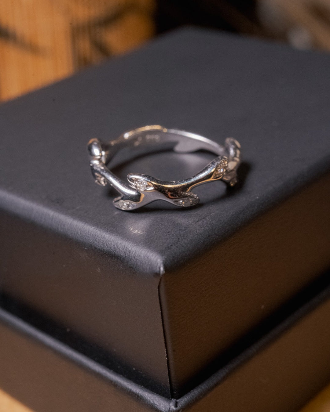 Anel Hstern em ouro branco com 5 diamantes de 0.02ct cada e peso de 2.8g.