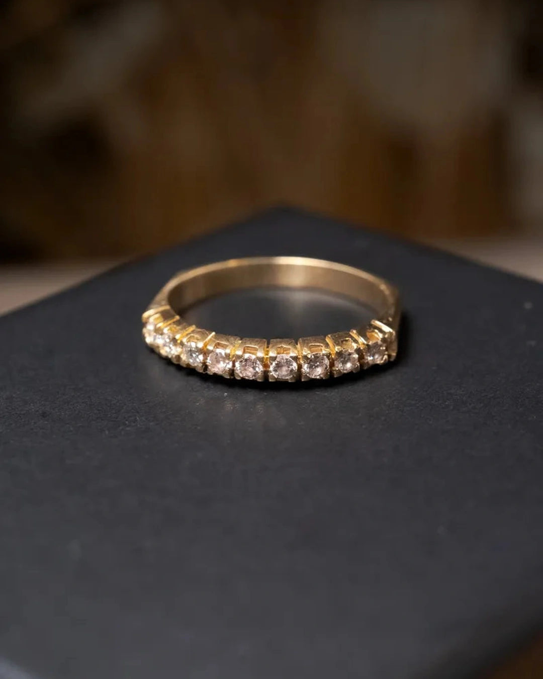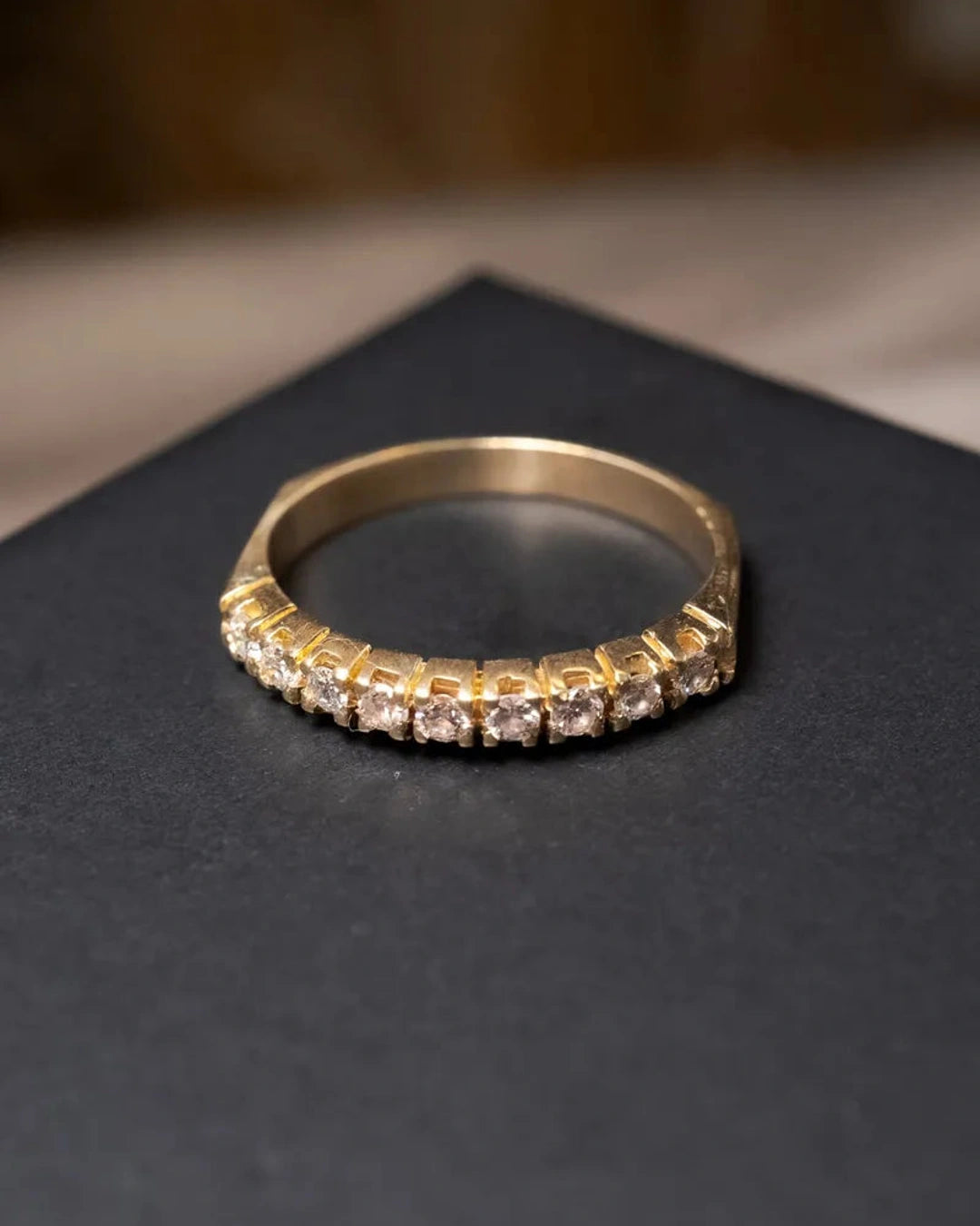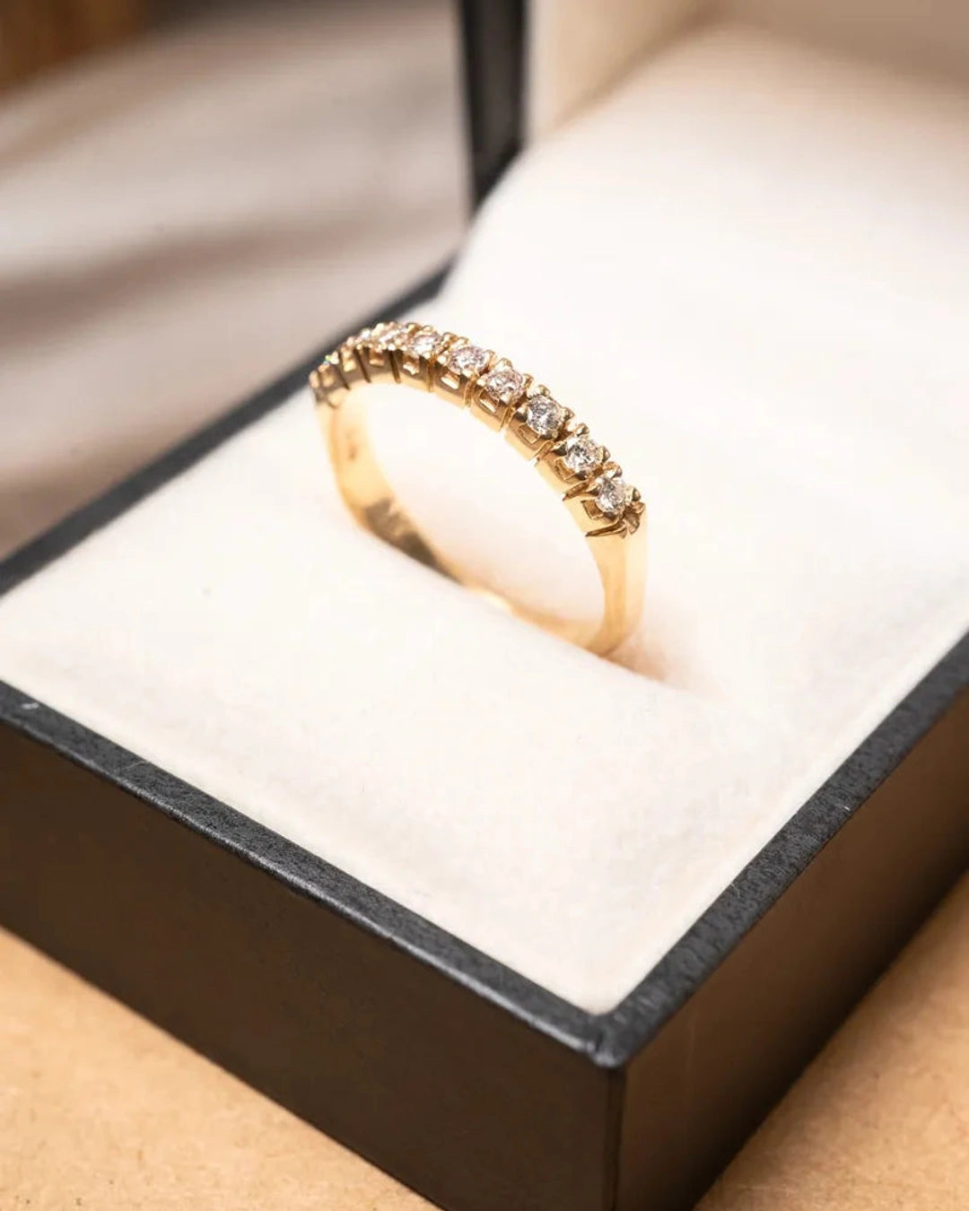 Anel Meia Aliança Em Ouro Amarelo E Diamantes De 05 Pontos