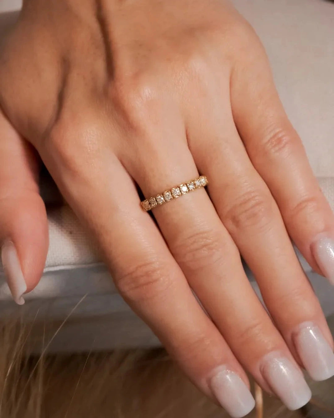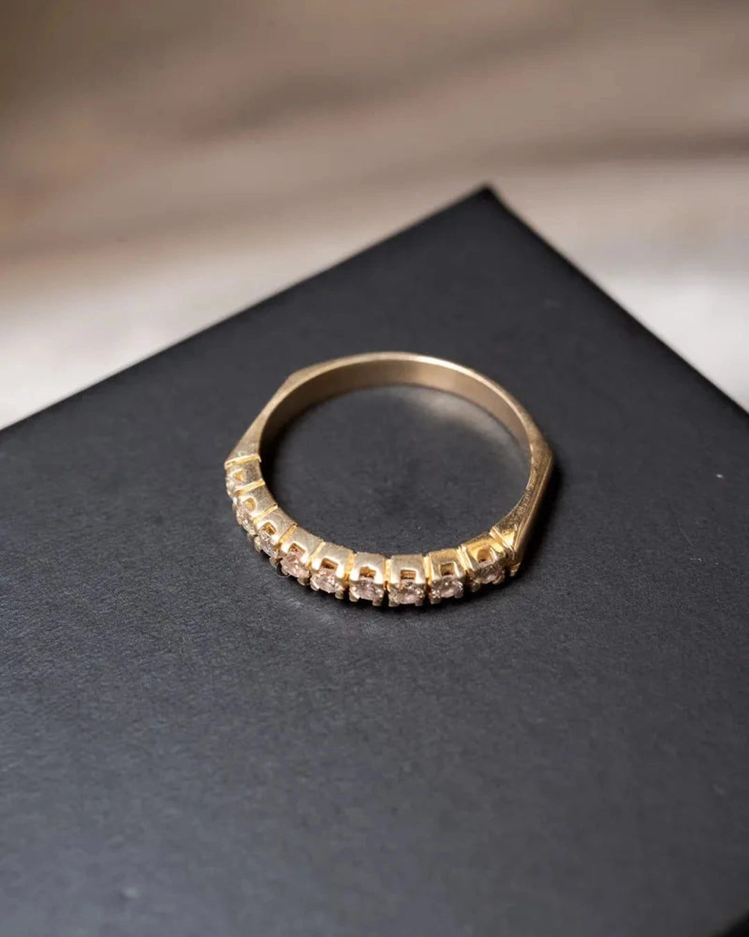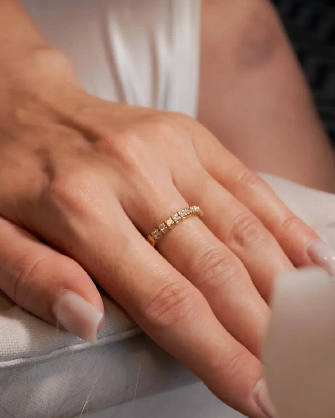 Anel Meia Aliança Em Ouro Amarelo E Diamantes De 05 Pontos