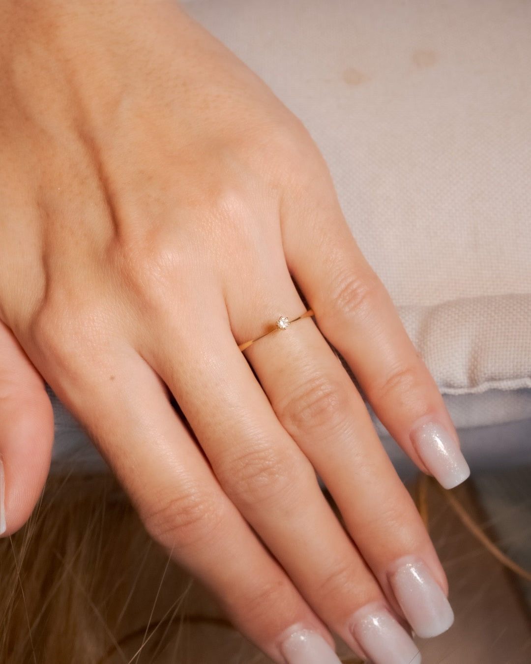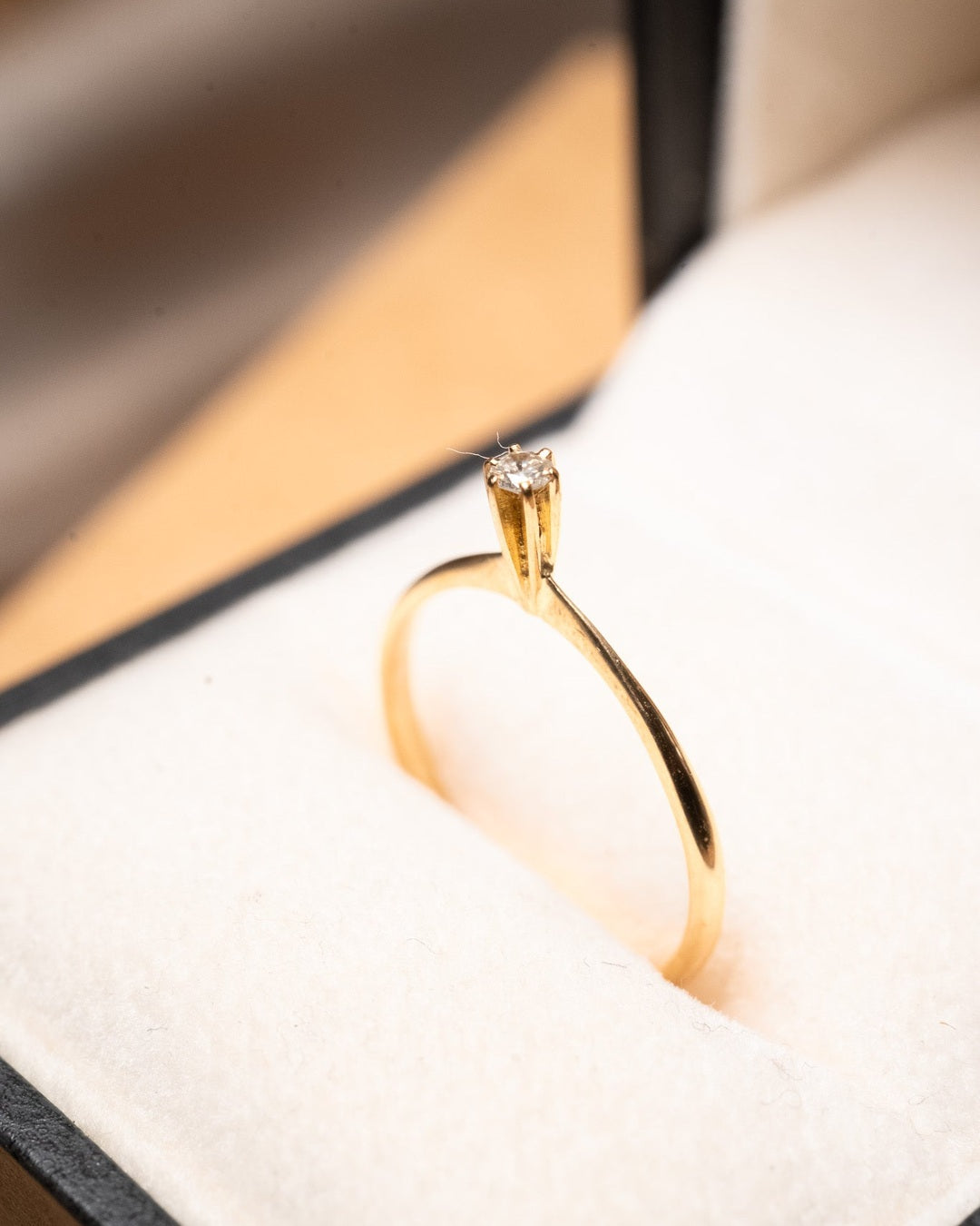 Anel solitário em ouro amarelo com diamante vvs1 de 0.06ct e peso de 1.3g. Aro 17.