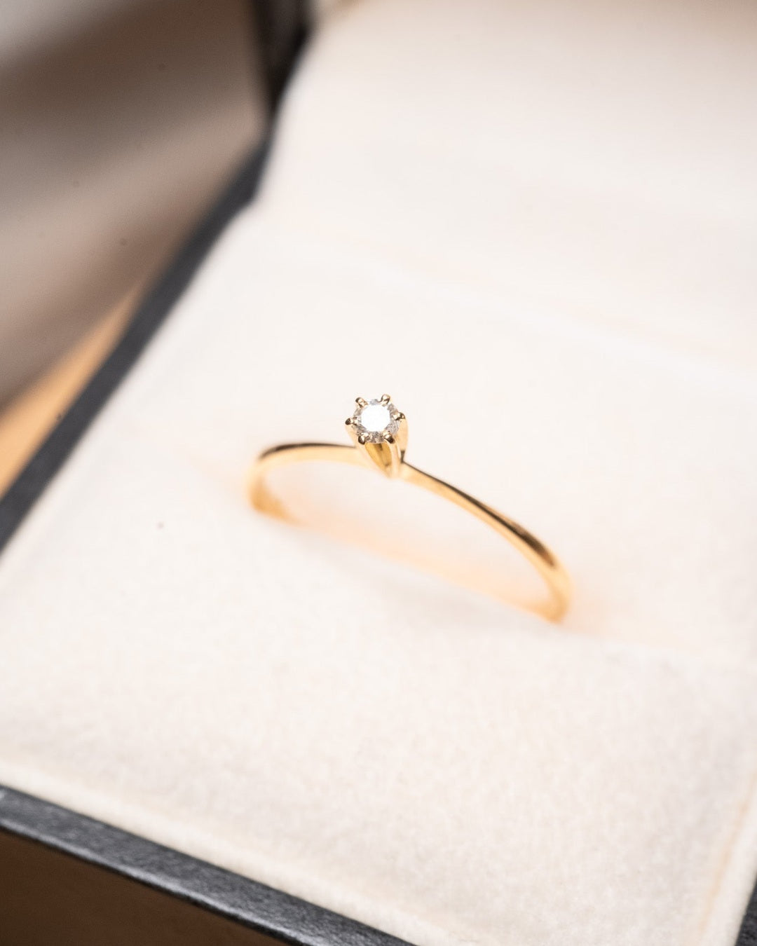 Anel Solitário em Ouro Amarelo com Diamante de 06 Pontos