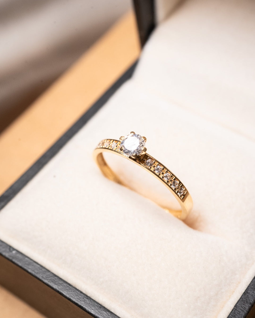 Título: Anel Solitário Em Ouro Amarelo Topázio Incolor De 25 Pontos
