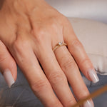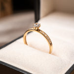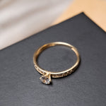 Anel solitário de ouro amarelo com topázio incolor de 0.25 quilates e peso de 1.7g.