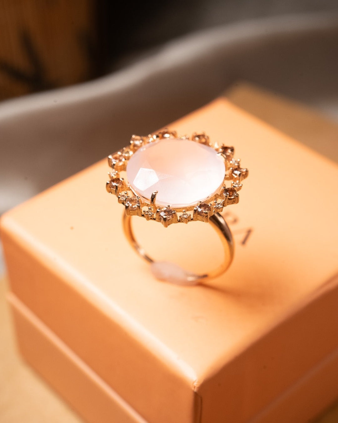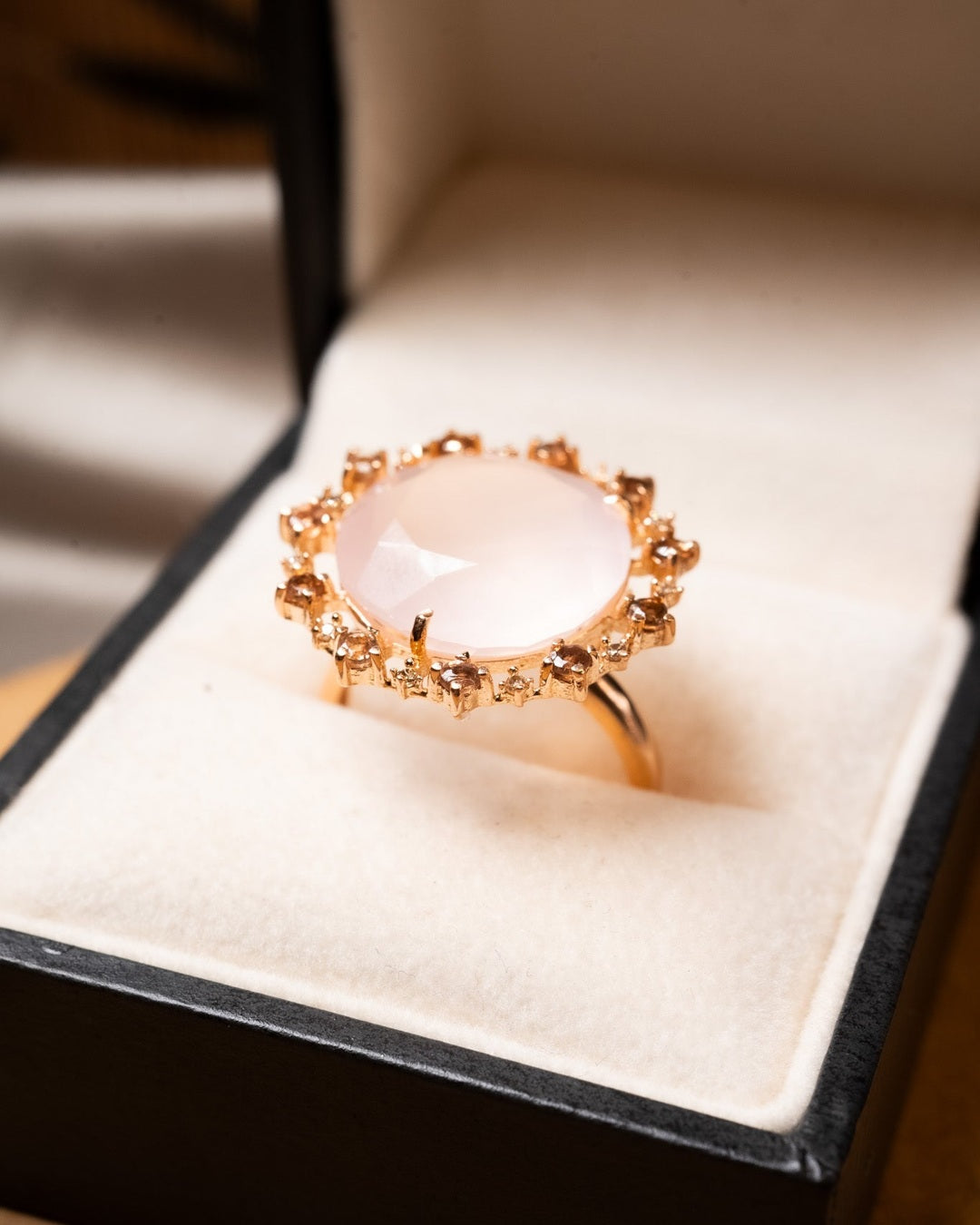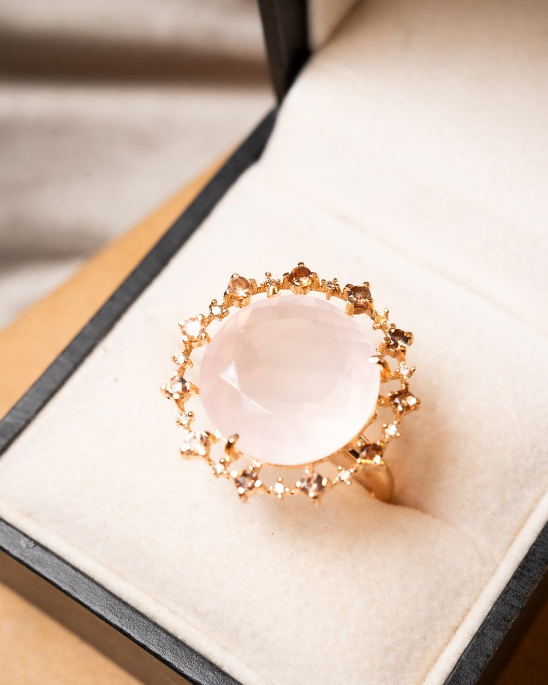 Título: Anel Vivara Antoniette de Ouro Rose com Quartzo Rosa e Diamantes