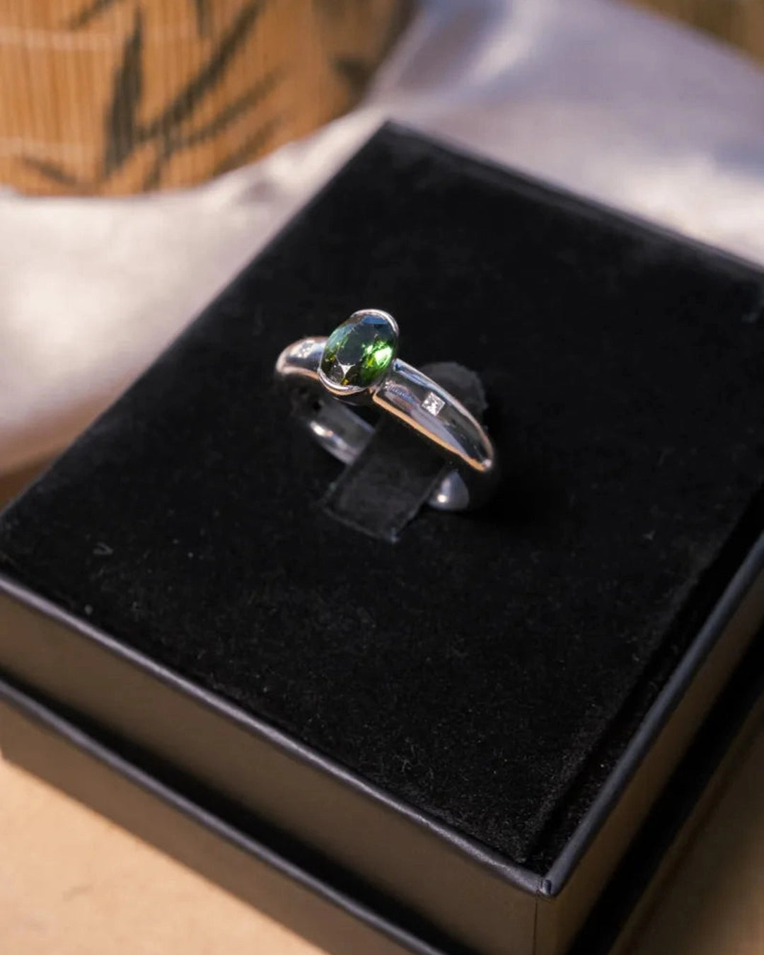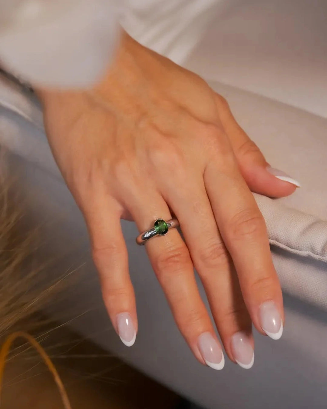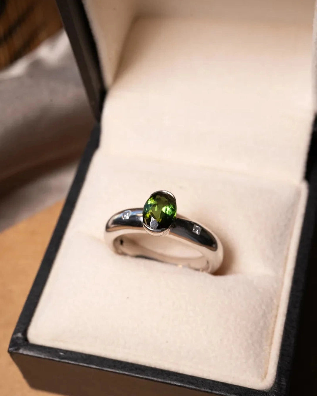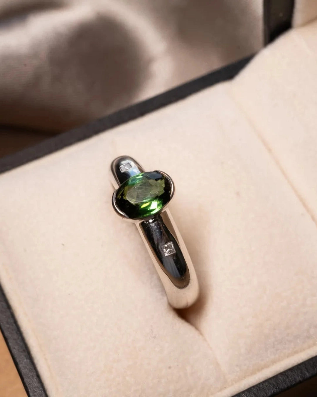 Solitário Hstern Ouro Branco Com Turmalina Verde E Diamantes