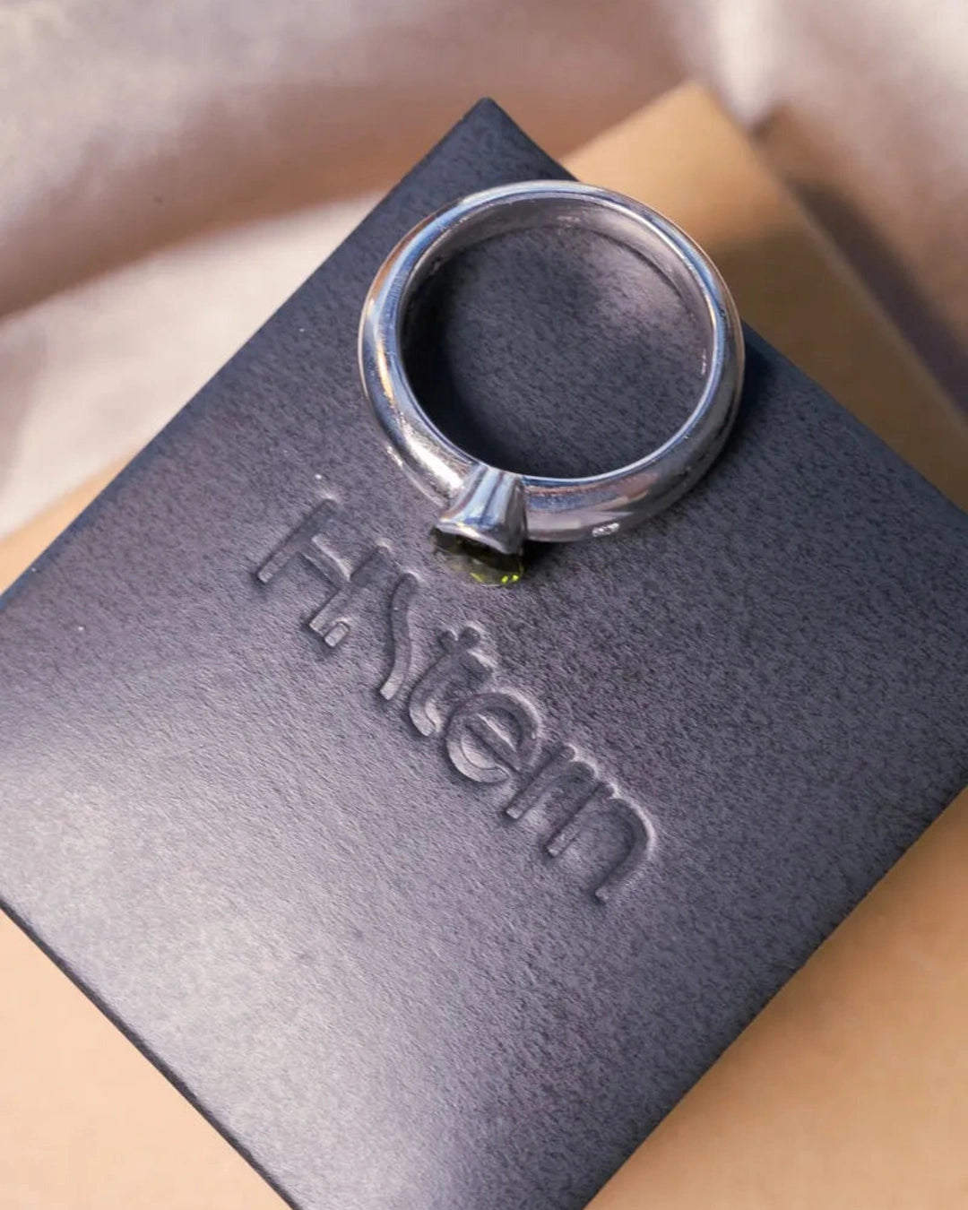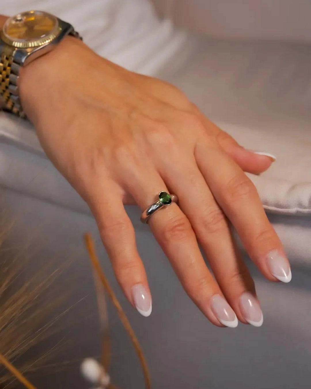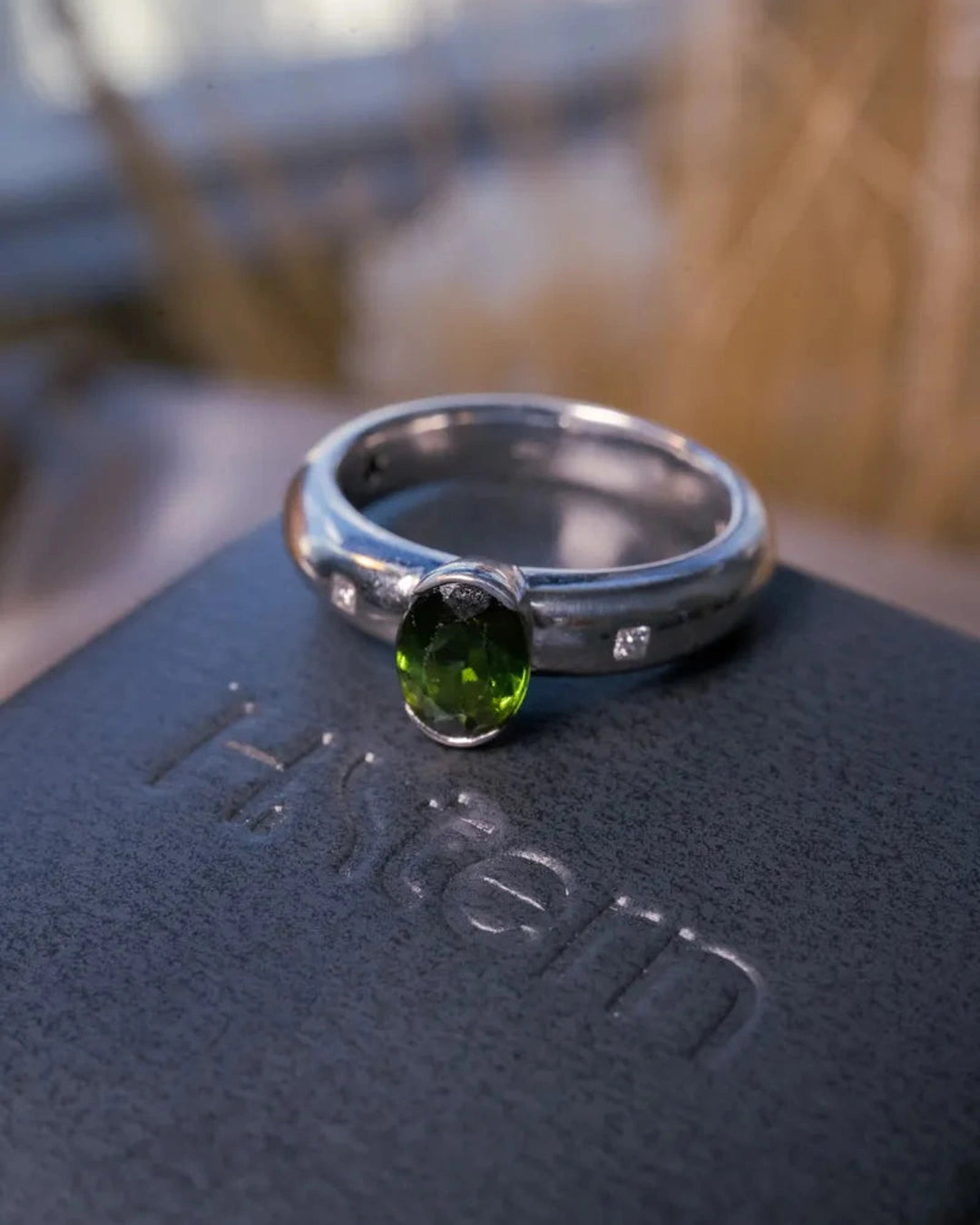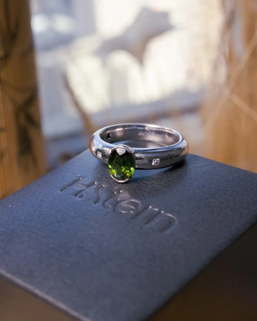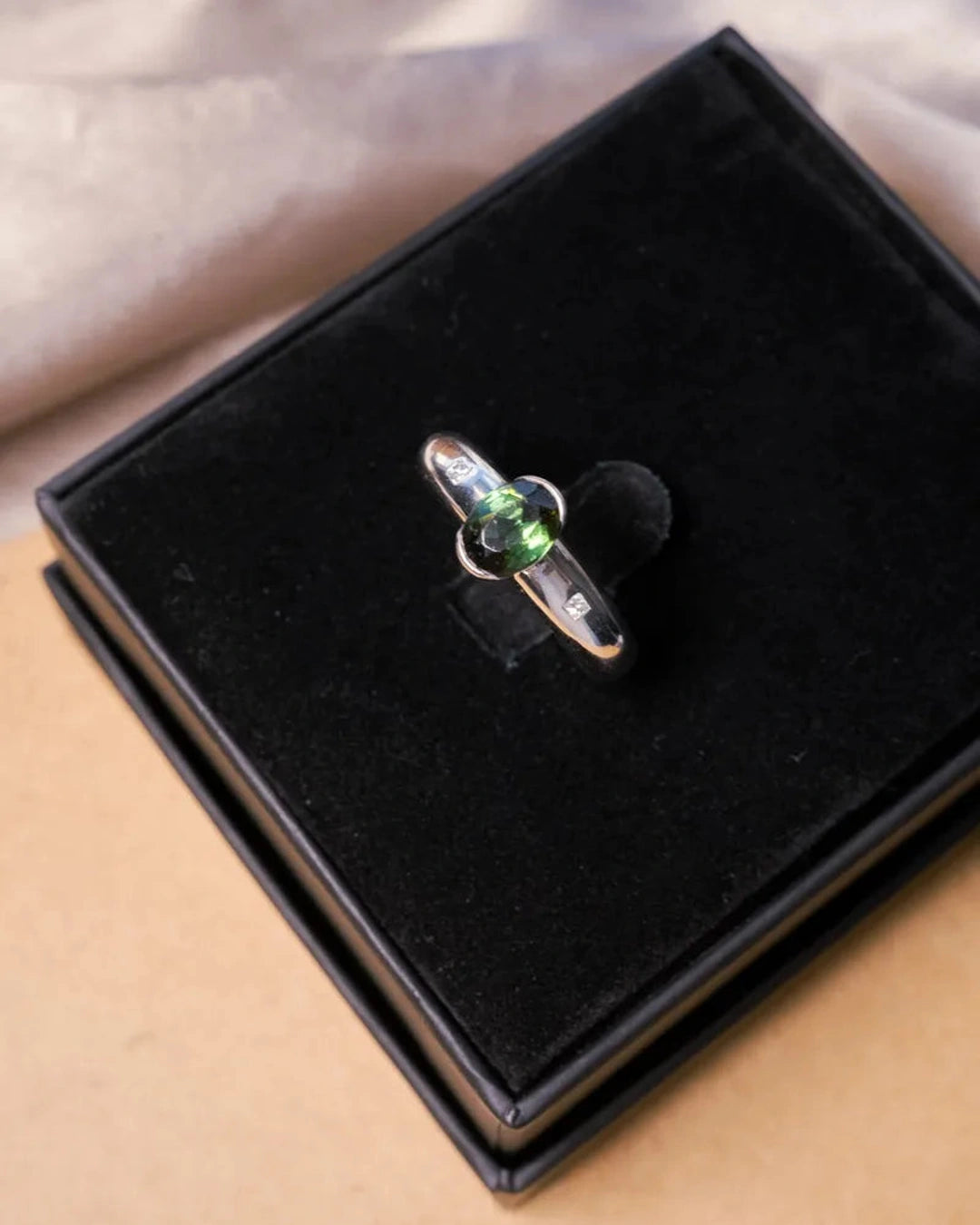 Solitário Hstern Ouro Branco Com Turmalina Verde E Diamantes