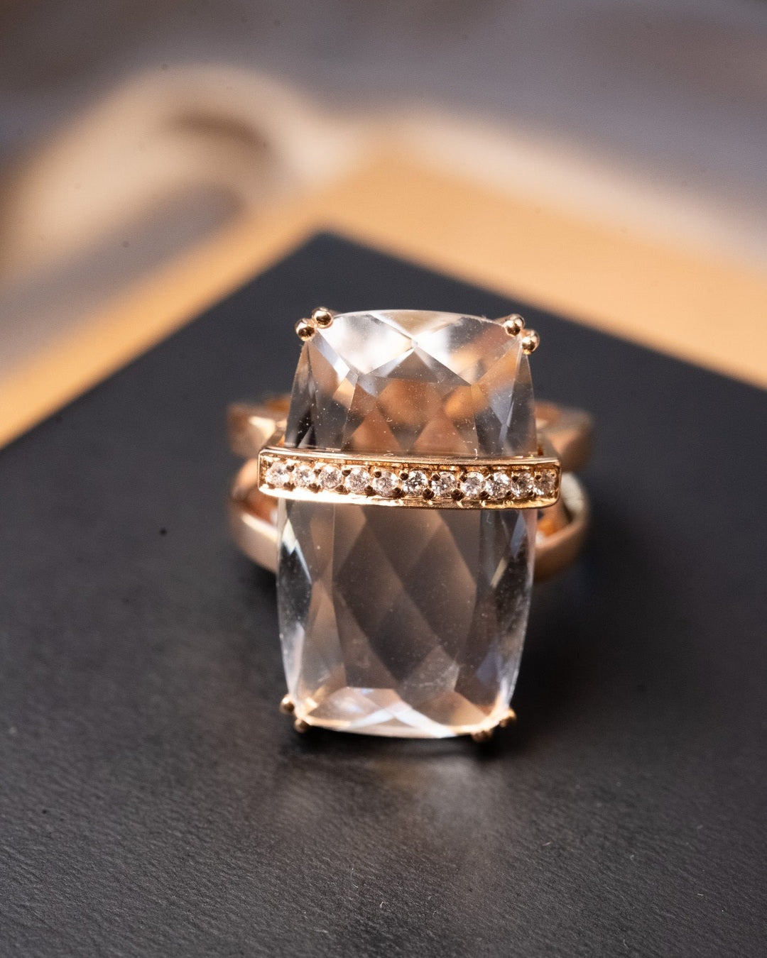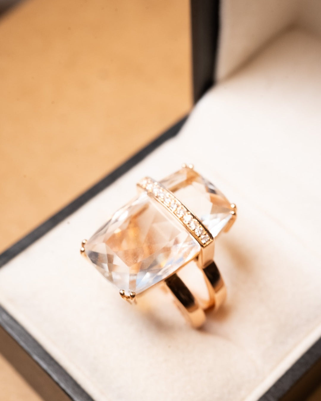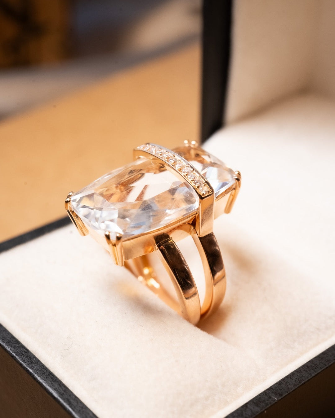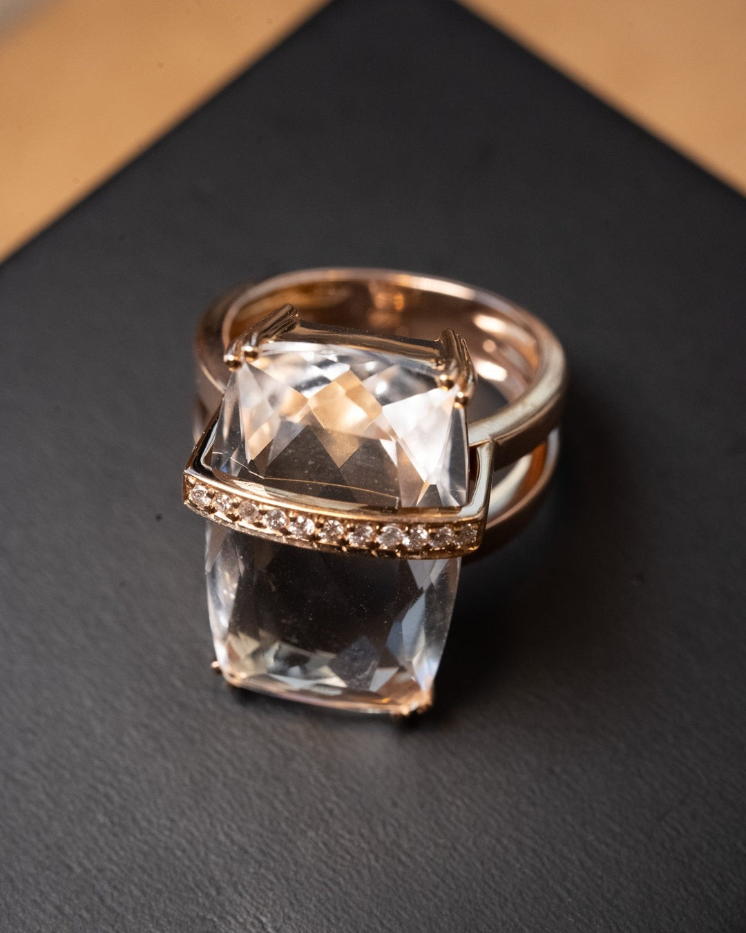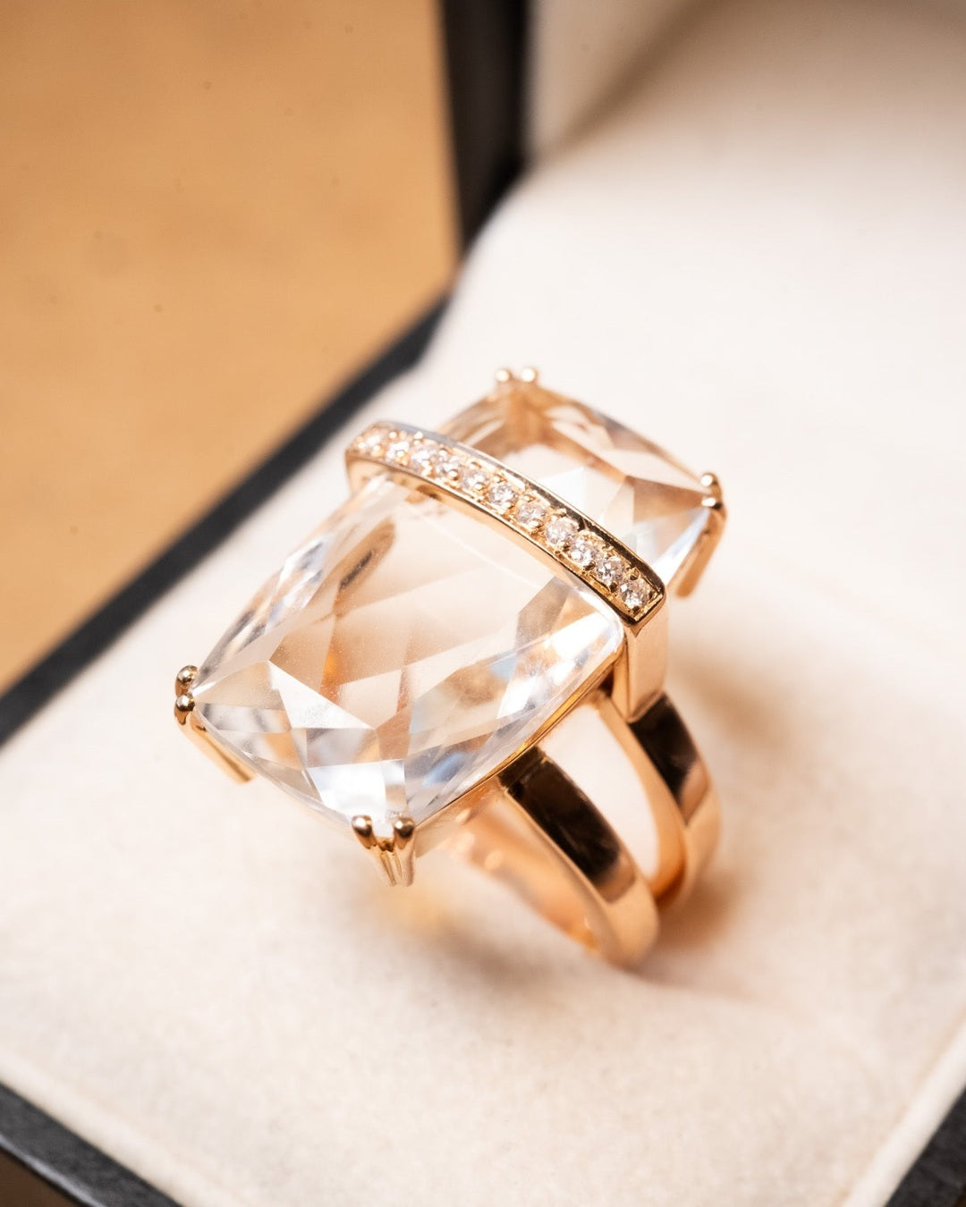 Título: Anel Julio Okubo Ouro Rosê Com Diamantes E Cristal De Rocha