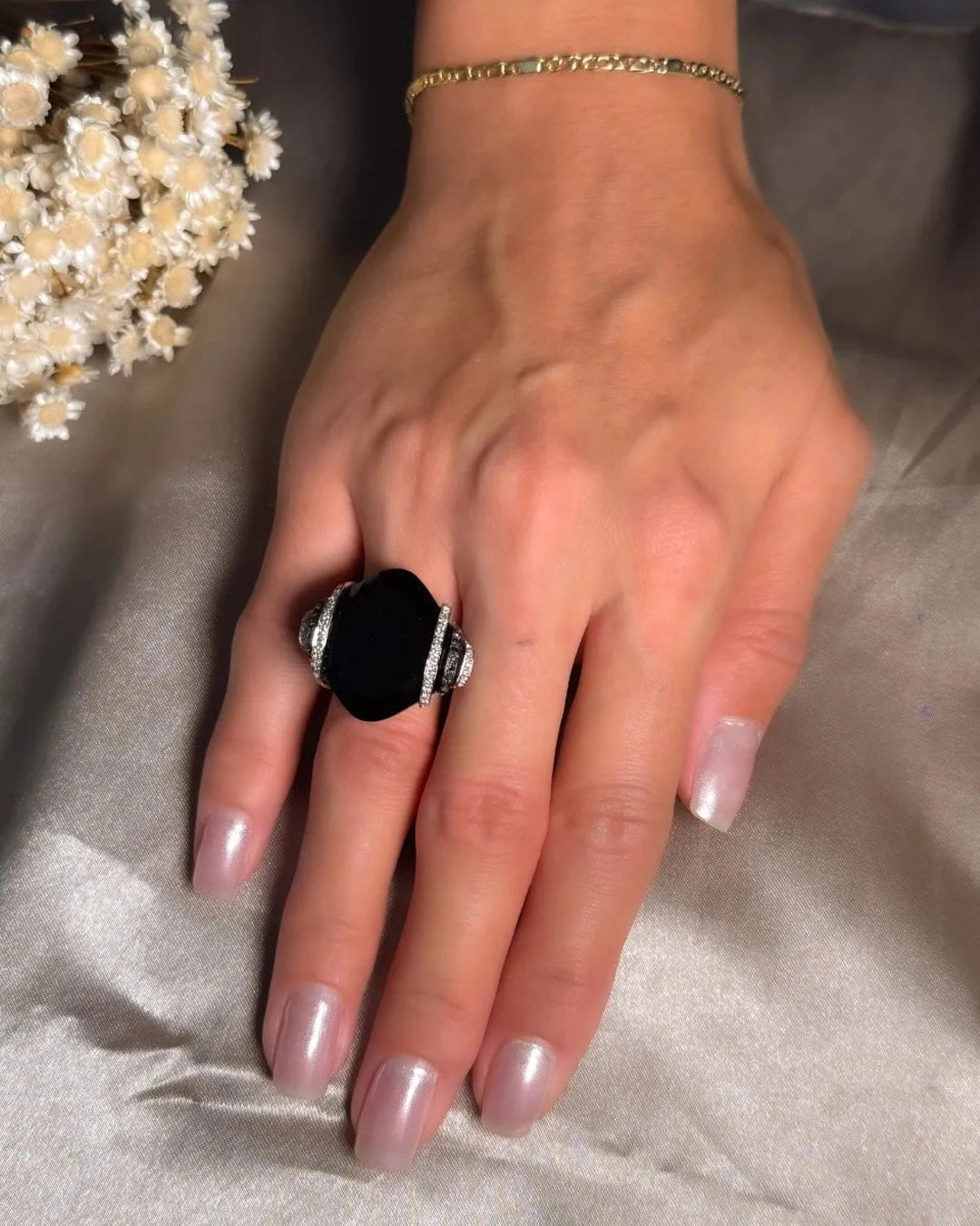 Anel Void Em Ouro Branco Com Ônix E Diamantes