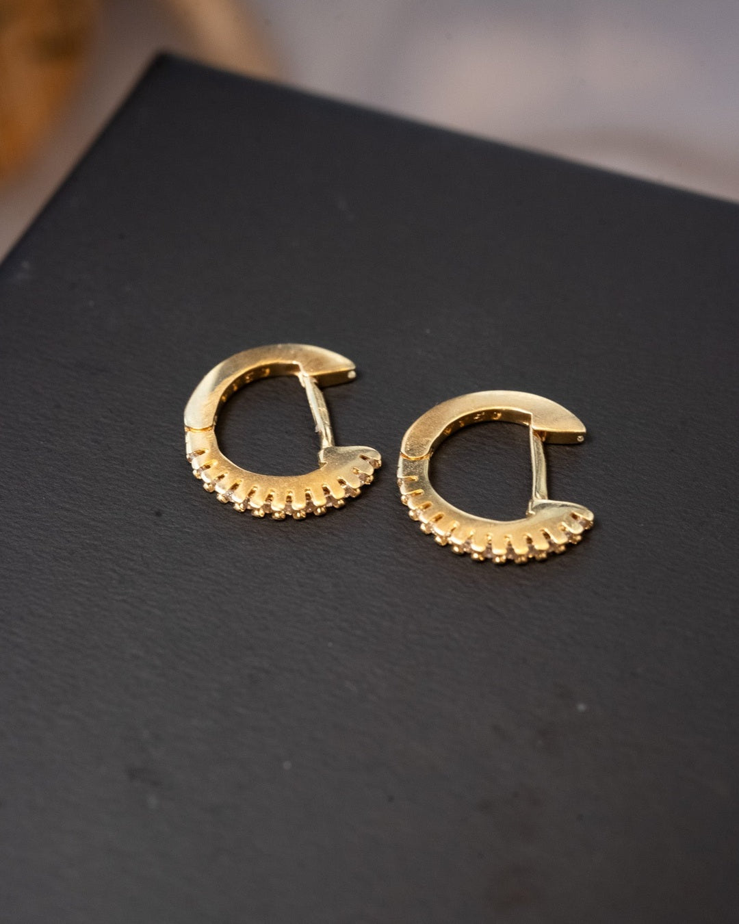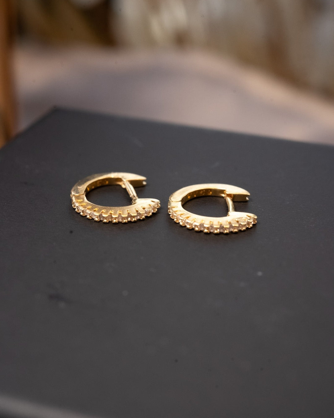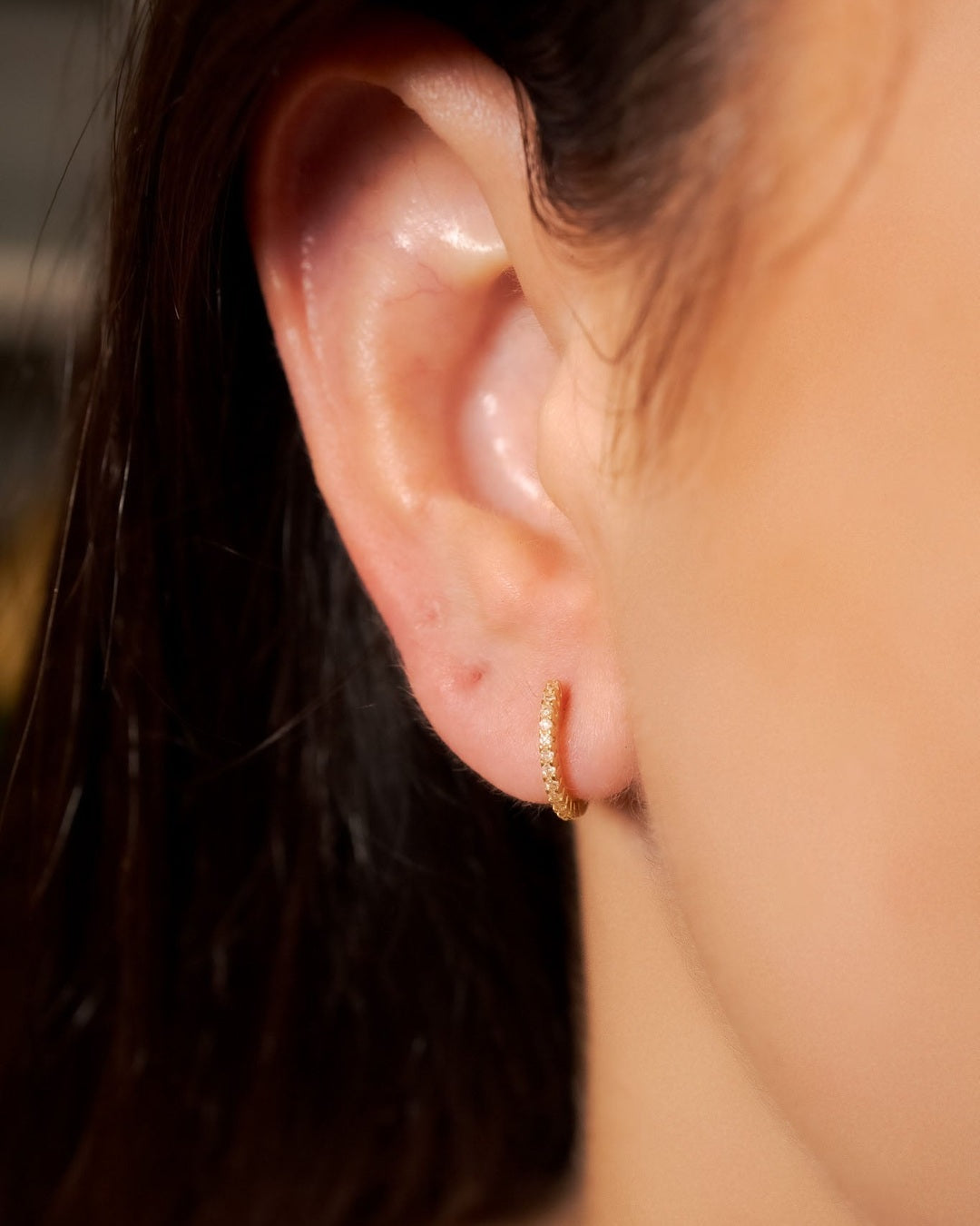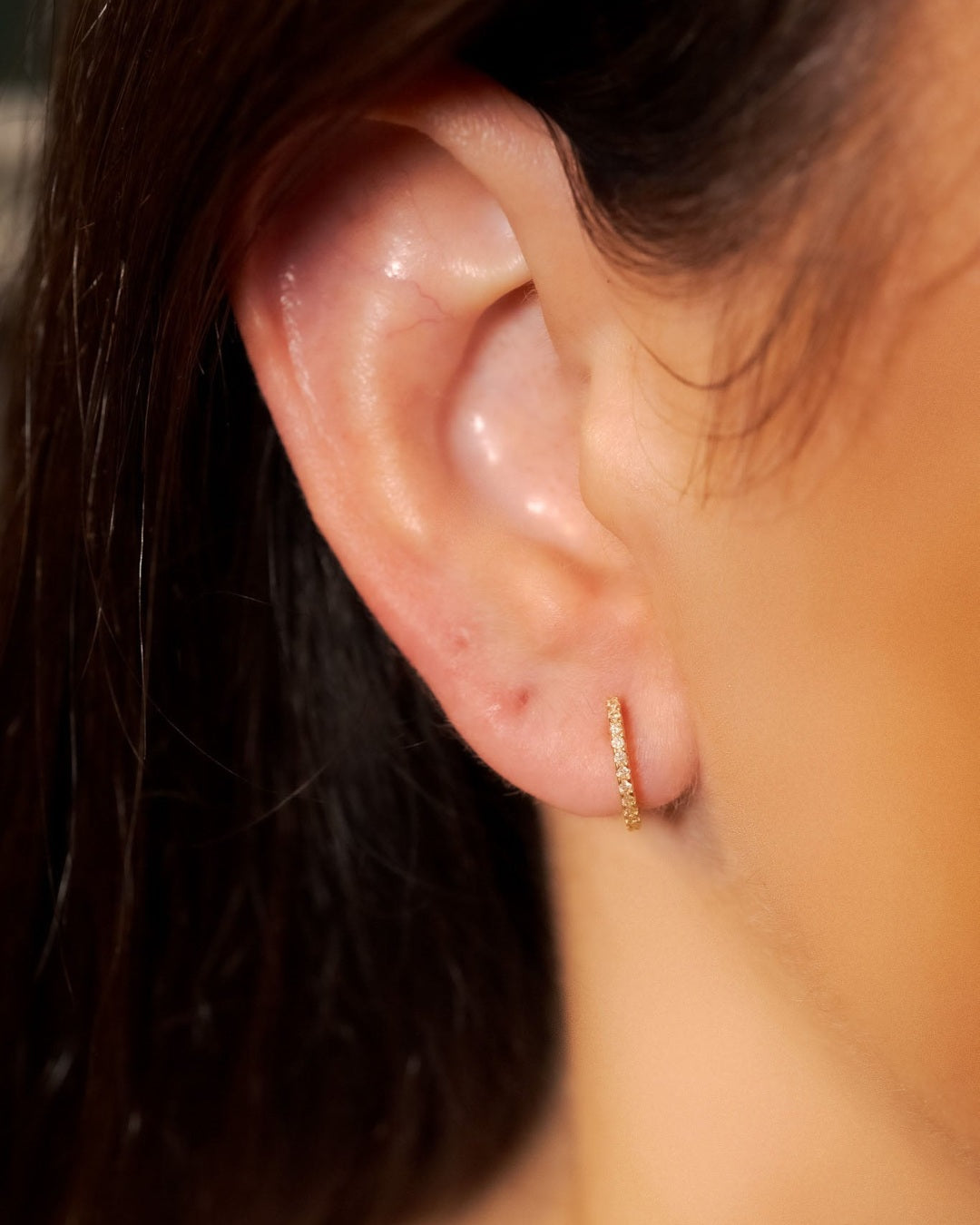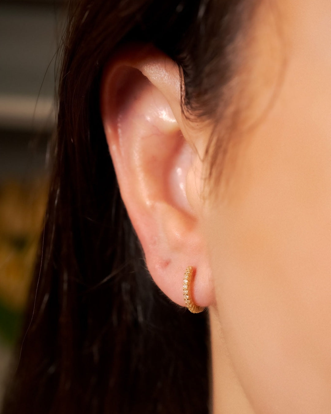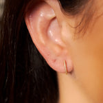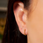 Brinco argolinhas Vivara de ouro amarelo com diamantes. 1.2cm de comprimento e 0.1cm de espessura. Peso 1.6g.