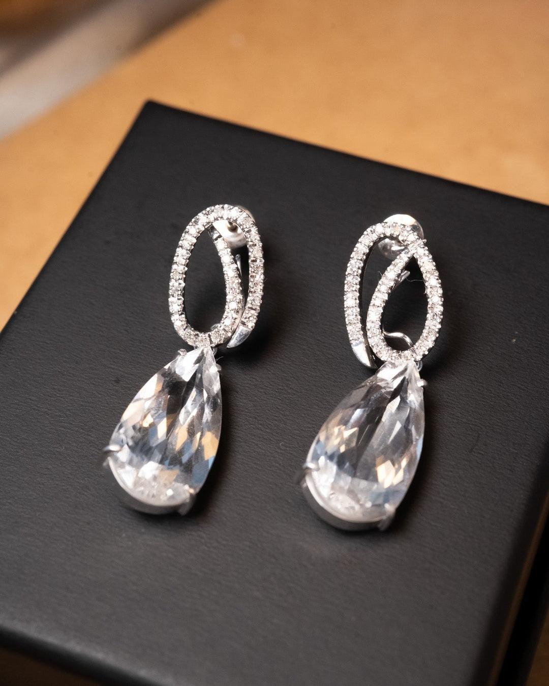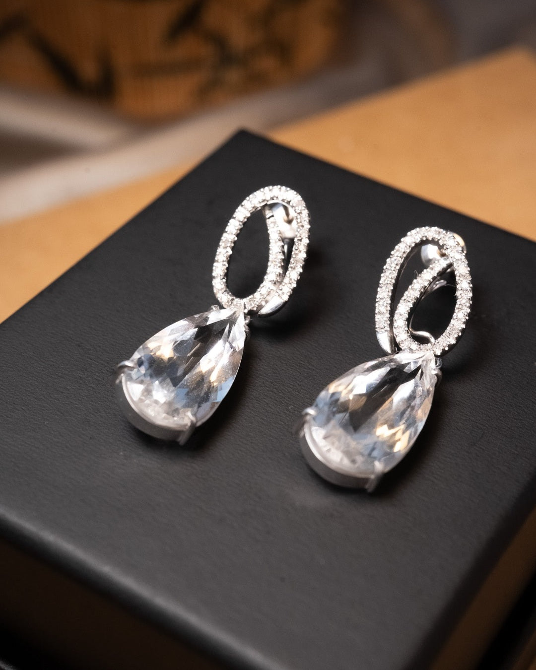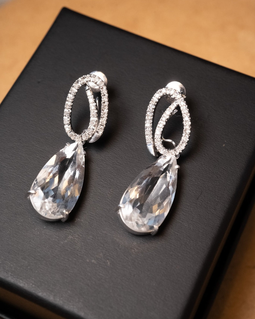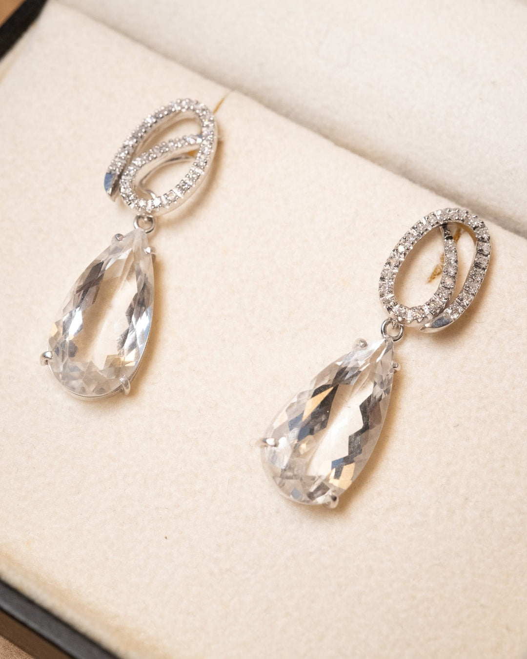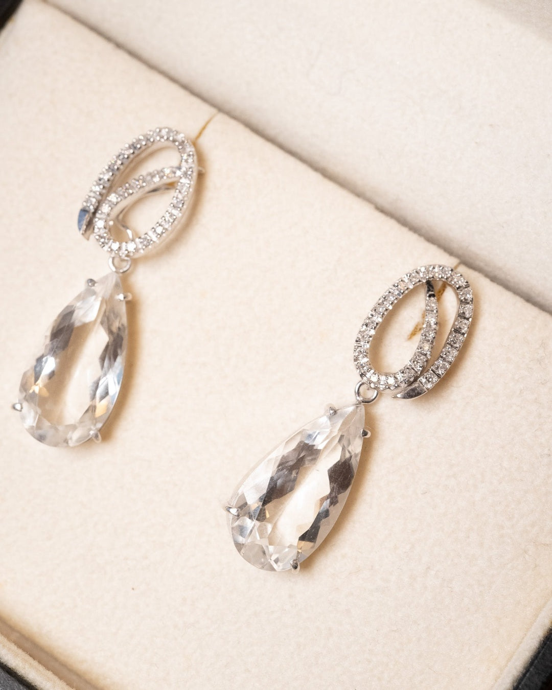 Título: Brinco Vivara de Ouro Branco com Diamantes e Cristais de Rocha