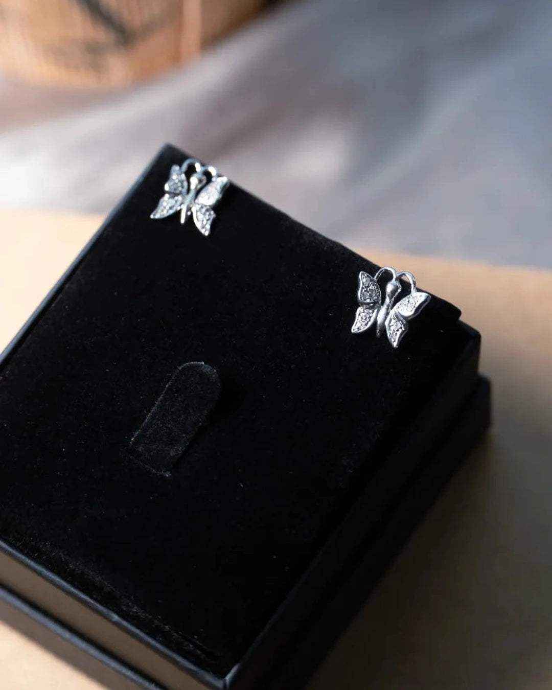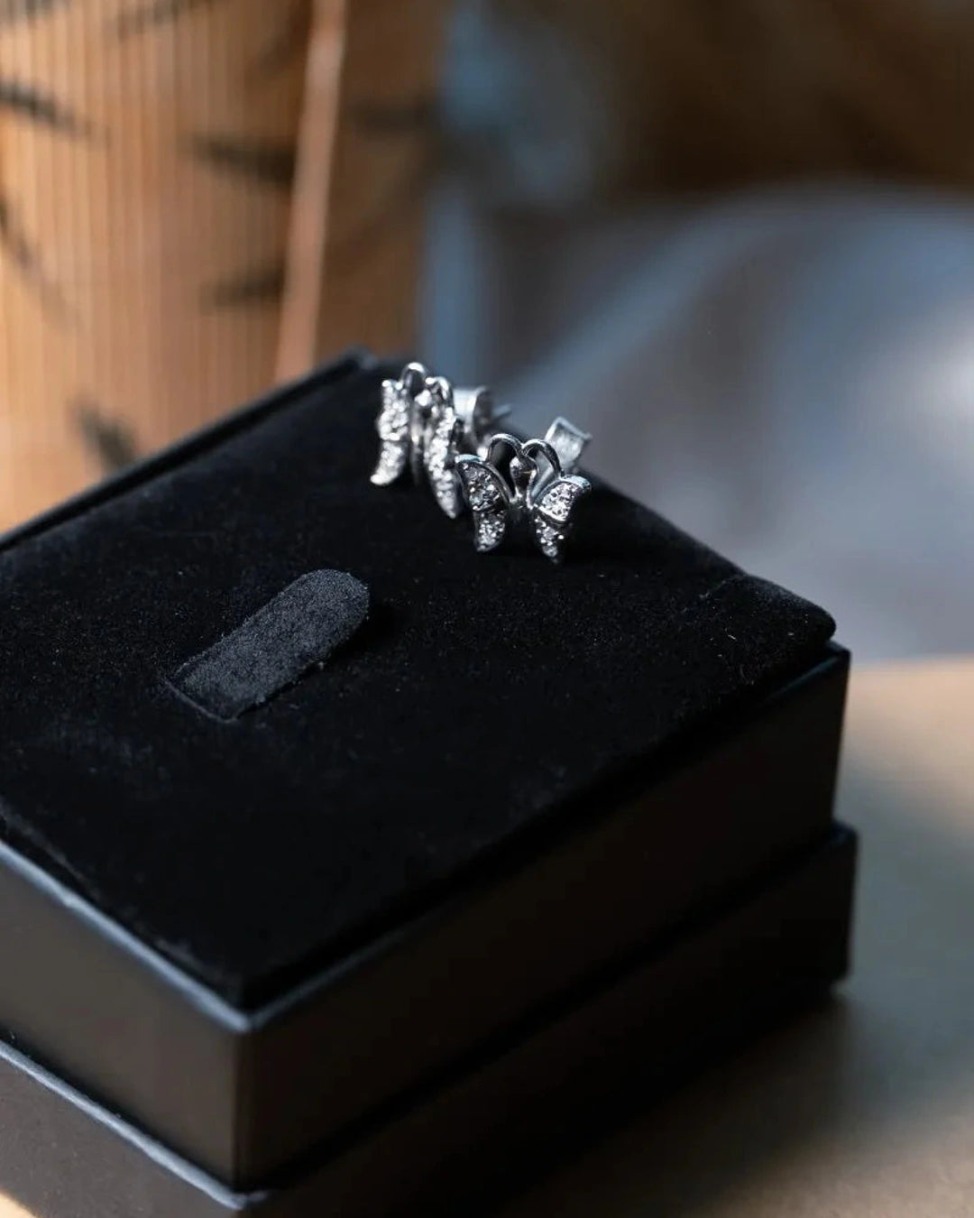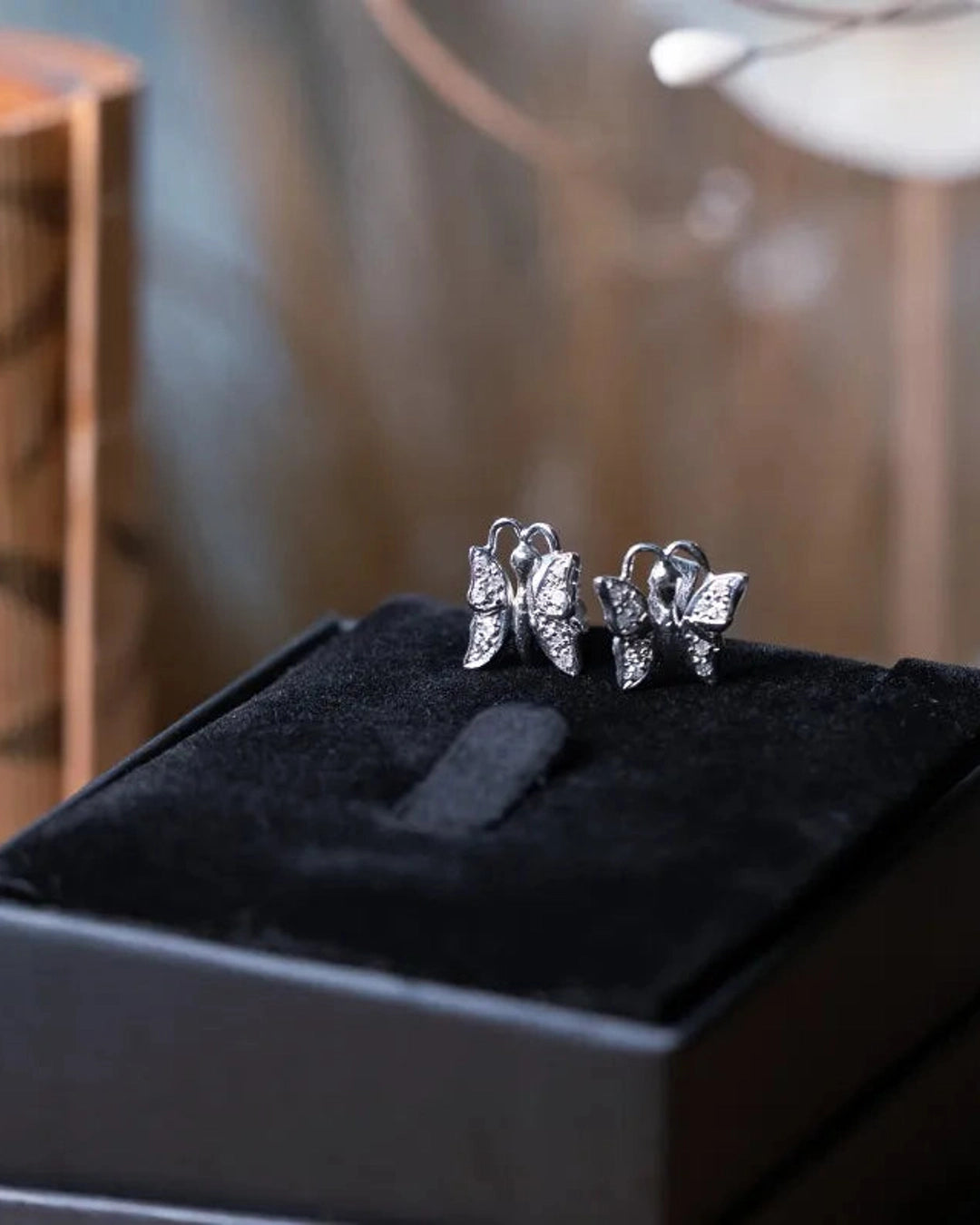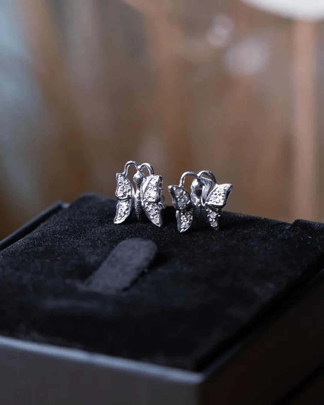 Brincos Borboleta Em Ouro Branco Com Diamantes