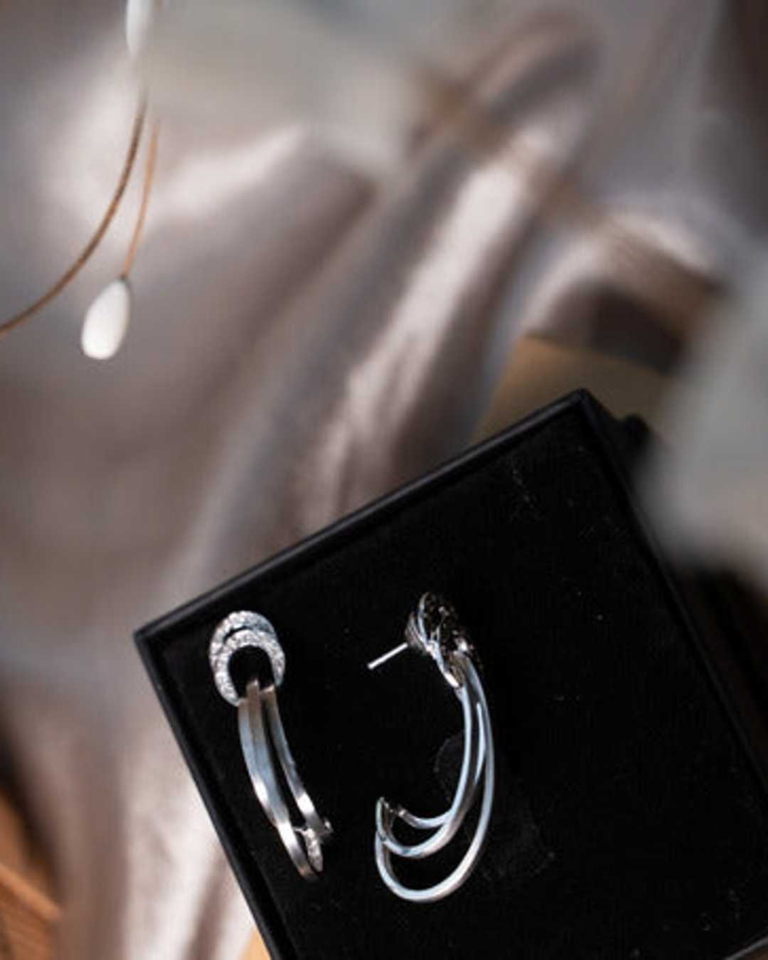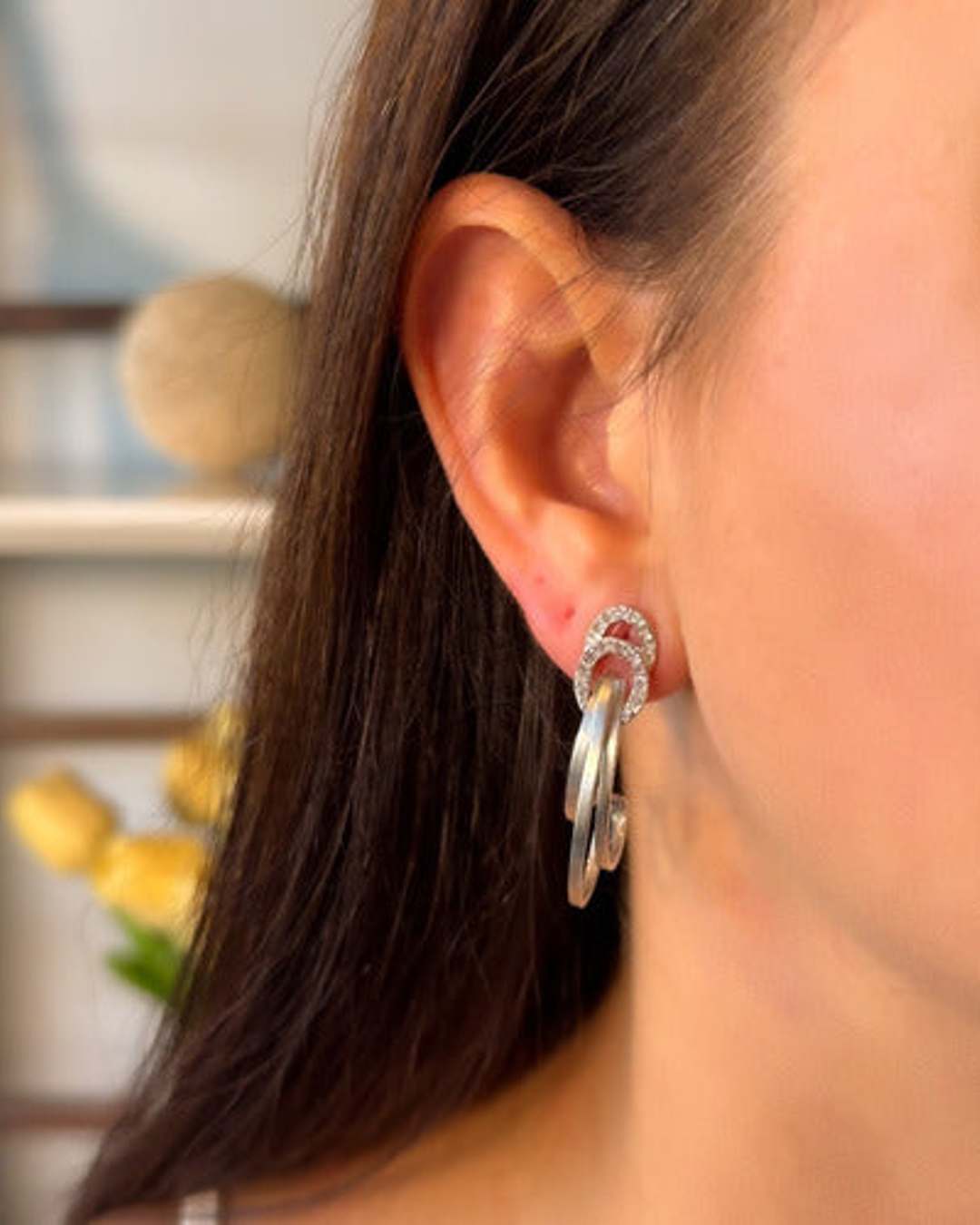 Brincos Pendente Curvas Em Ouro Branco Com Diamantes