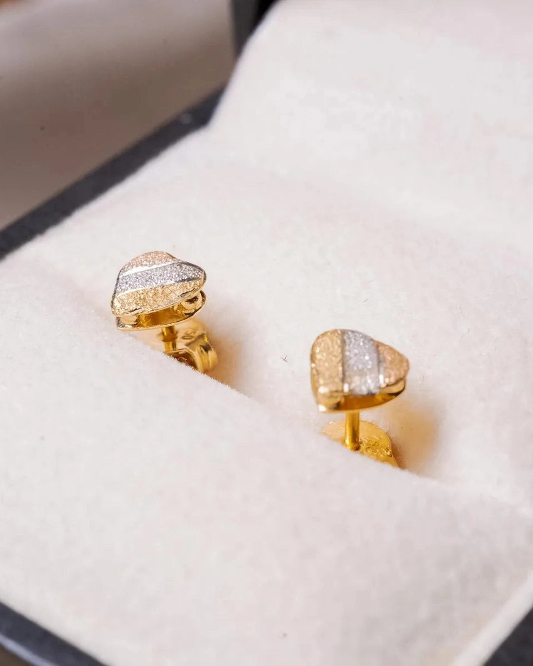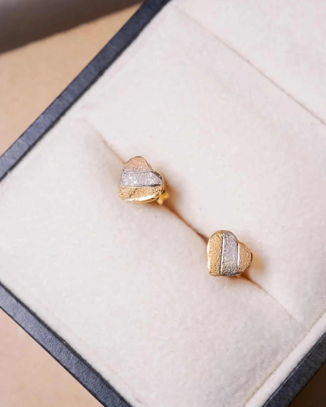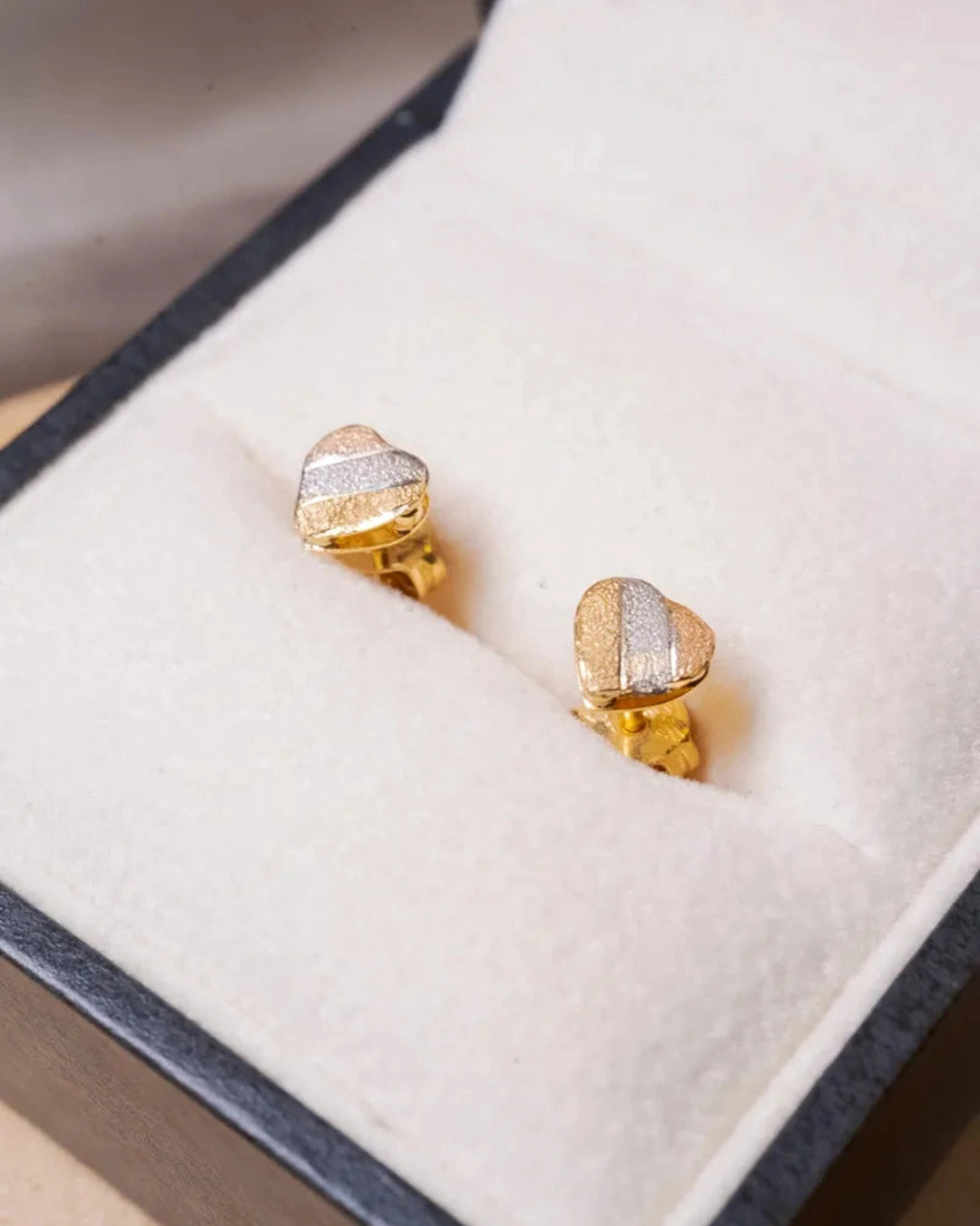 Brincos Stud Coração em Ouro Amarelo, Branco e Rosê