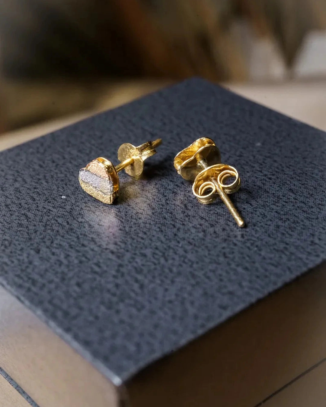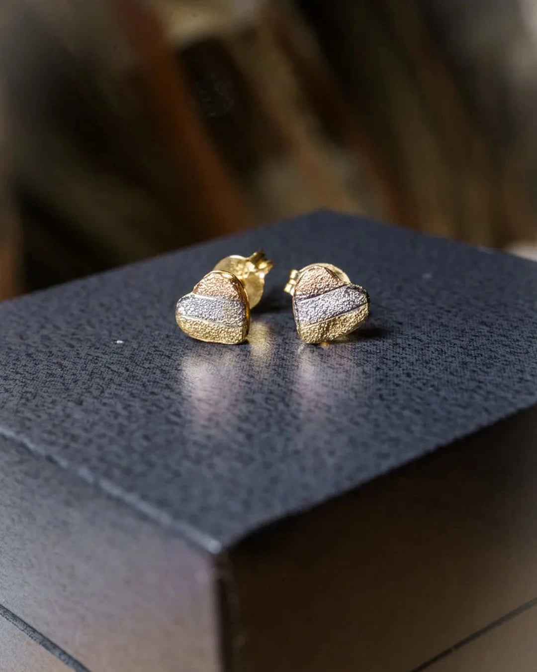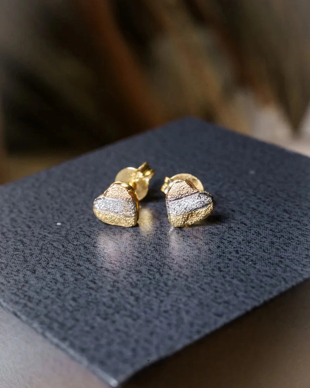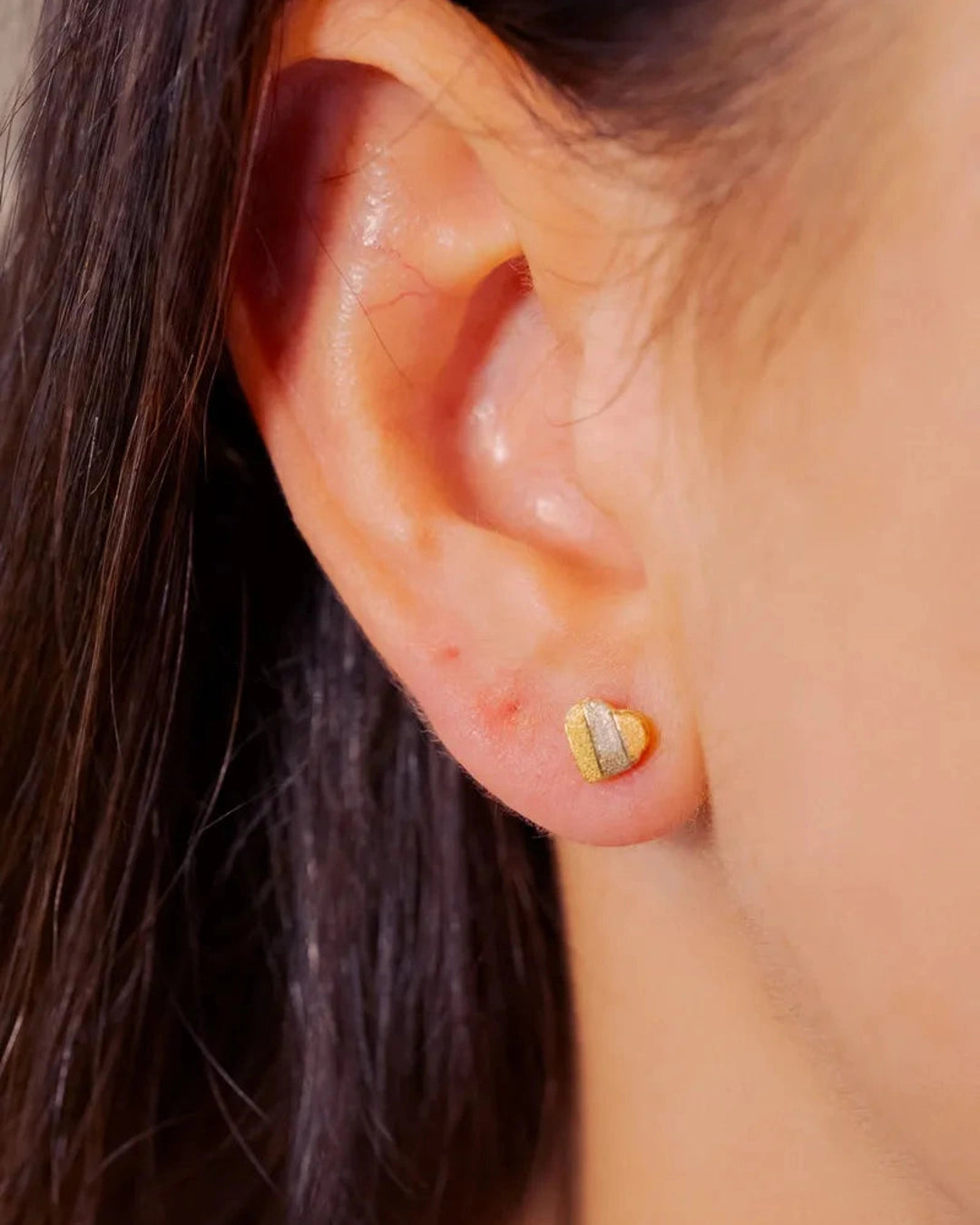 Brincos Stud Coração em Ouro Amarelo, Branco e Rosê