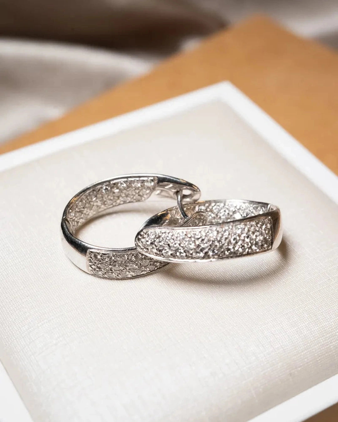 Brincos Bruner Argolas Ouro Branco Cravejadas Com Diamantes