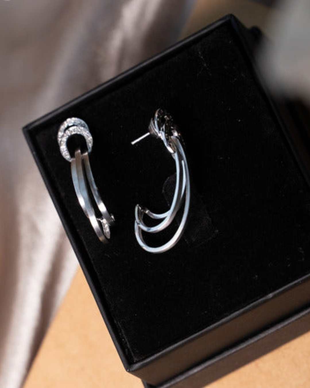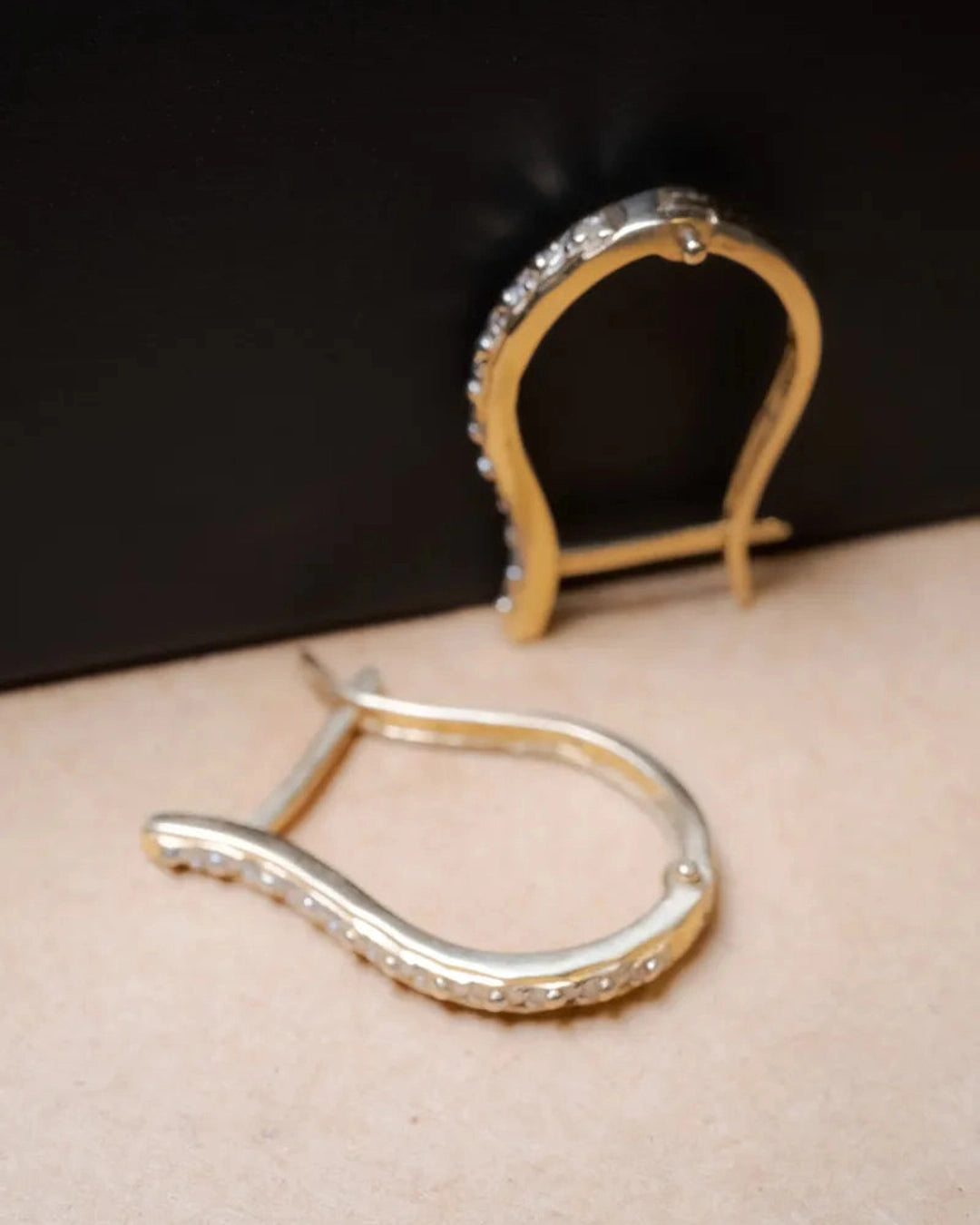 Brincos Meia Argola Moderno Em Ouro Amarelo E Branco