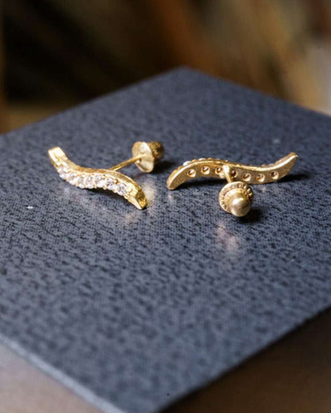 Brinco Stud Sutil Em Ouro Amarelo E Safiras