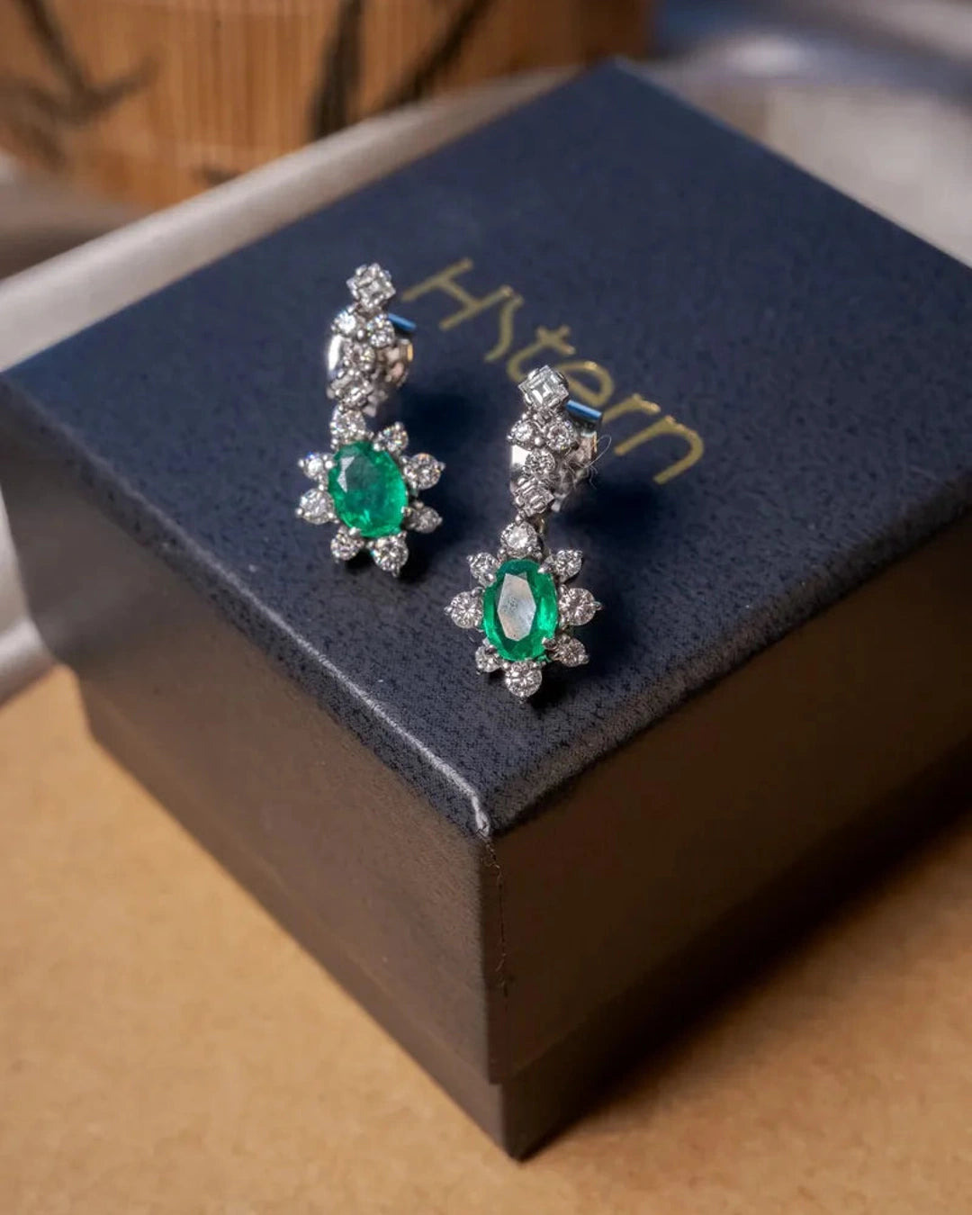 Brincos Pendente Hstern Em Ouro Com Esmeralda E Diamantes