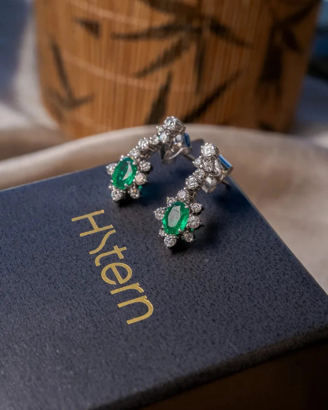 Brincos Pendente Hstern Em Ouro Com Esmeralda E Diamantes