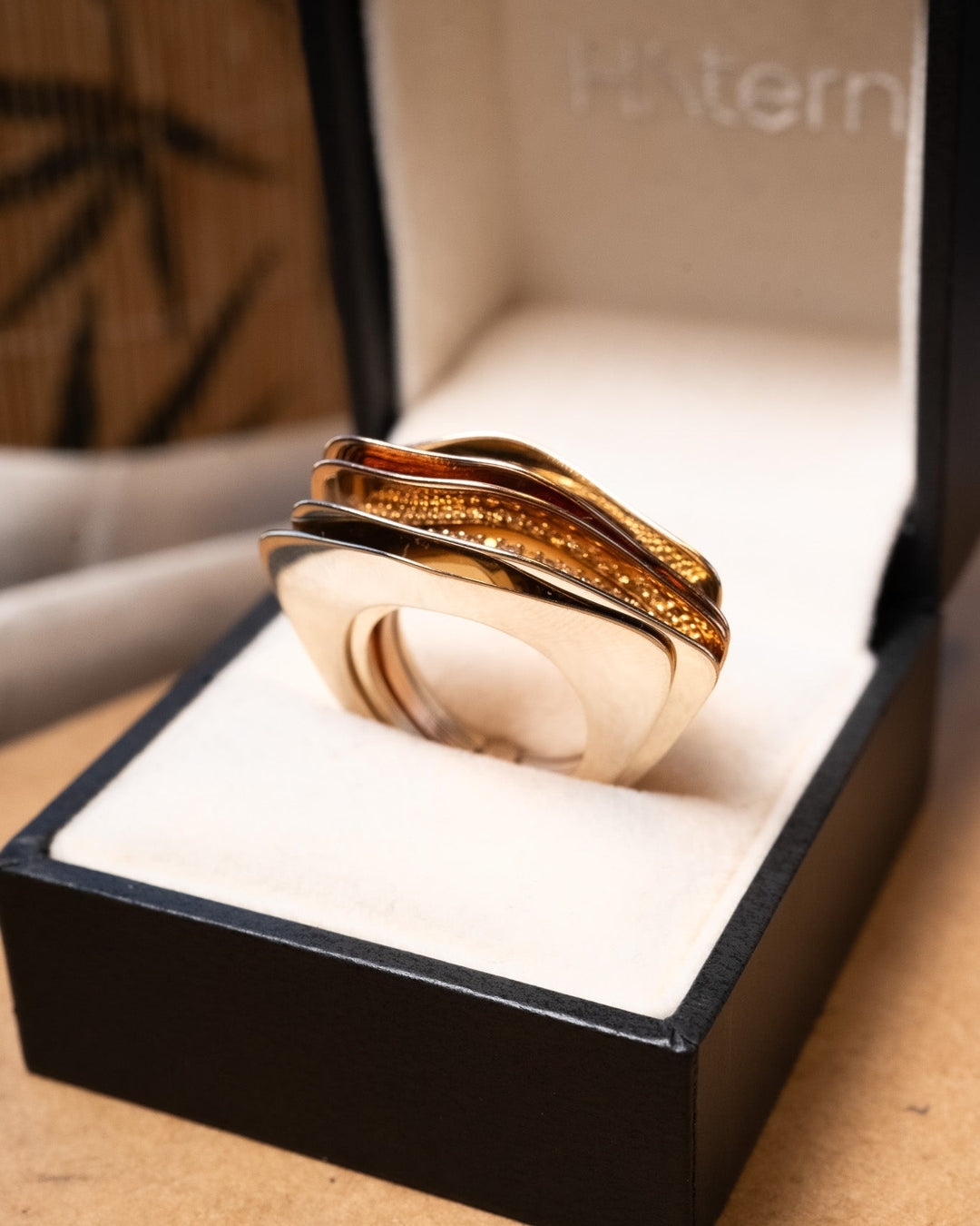 Anel Hstern Celtic Dunes de ouro amarelo. Medida 2.2cm. Aro 14. Peso 12.6g.