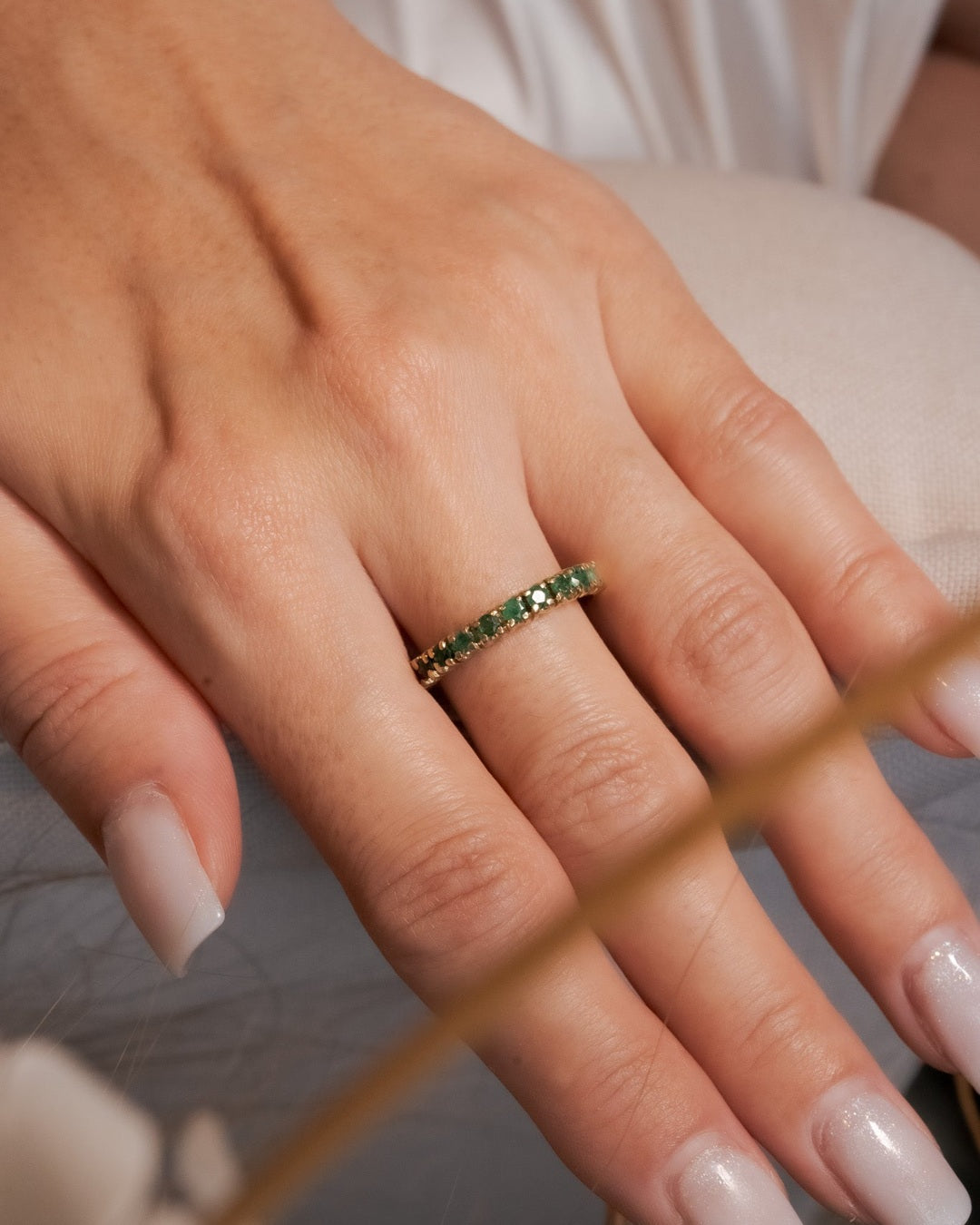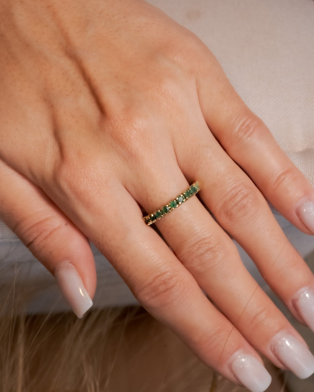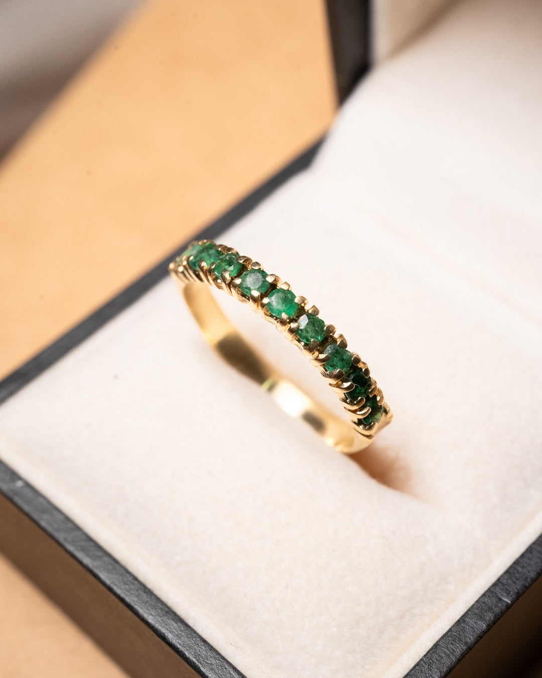 Título: Anel Meia Aliança Em Ouro Amarelo Com Esmeraldas