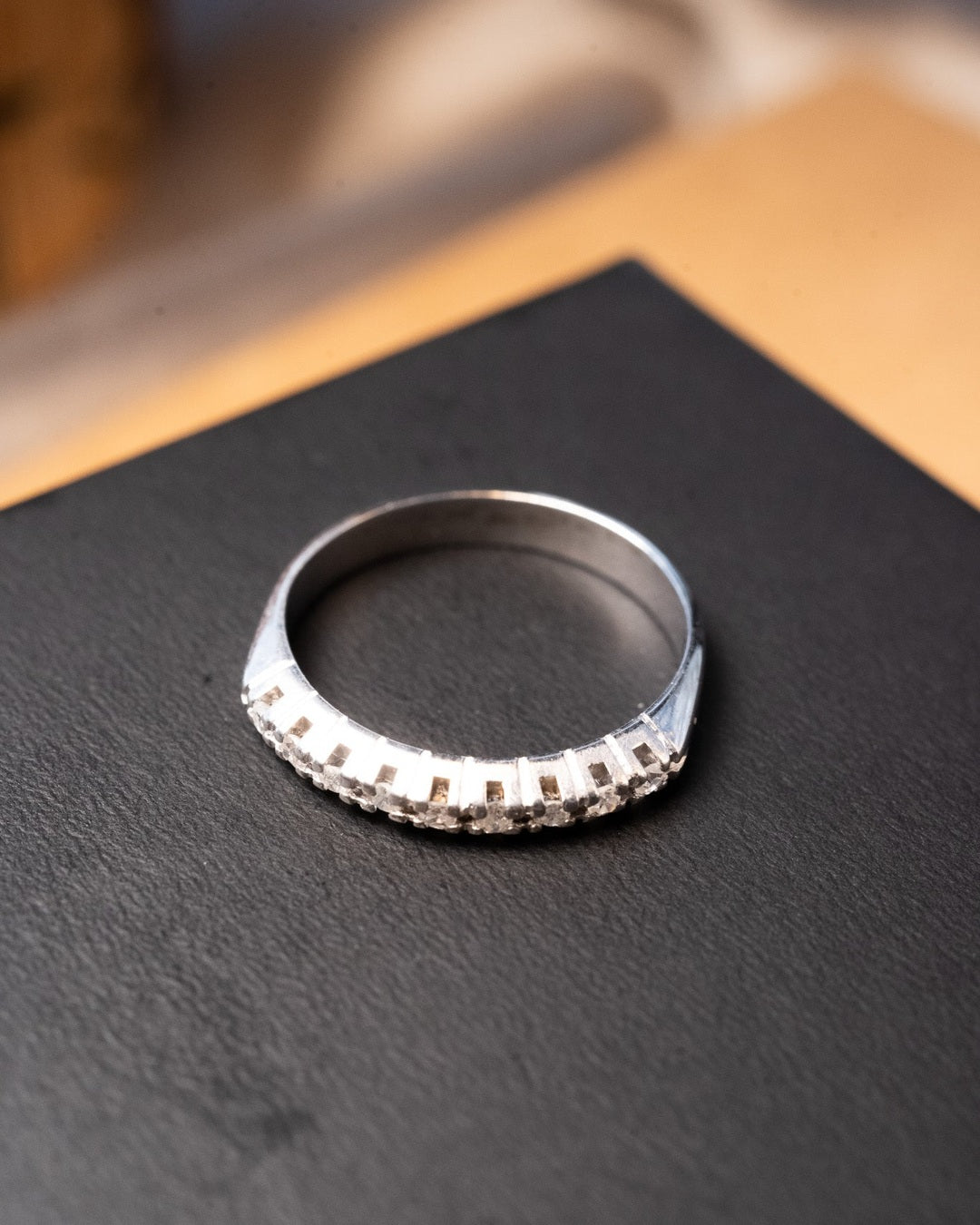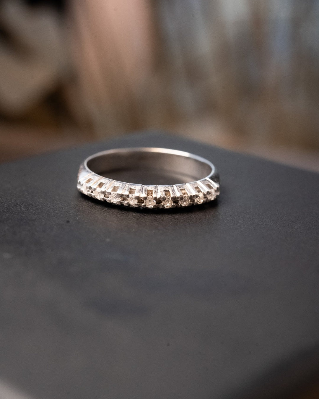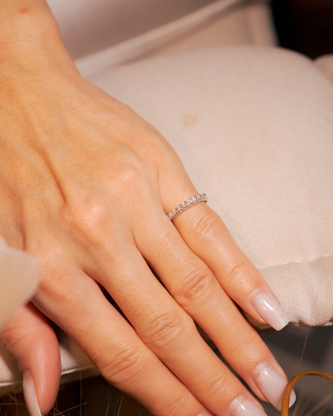 Anel Meia Aliança em Ouro Branco e Diamantes 02 Pontos