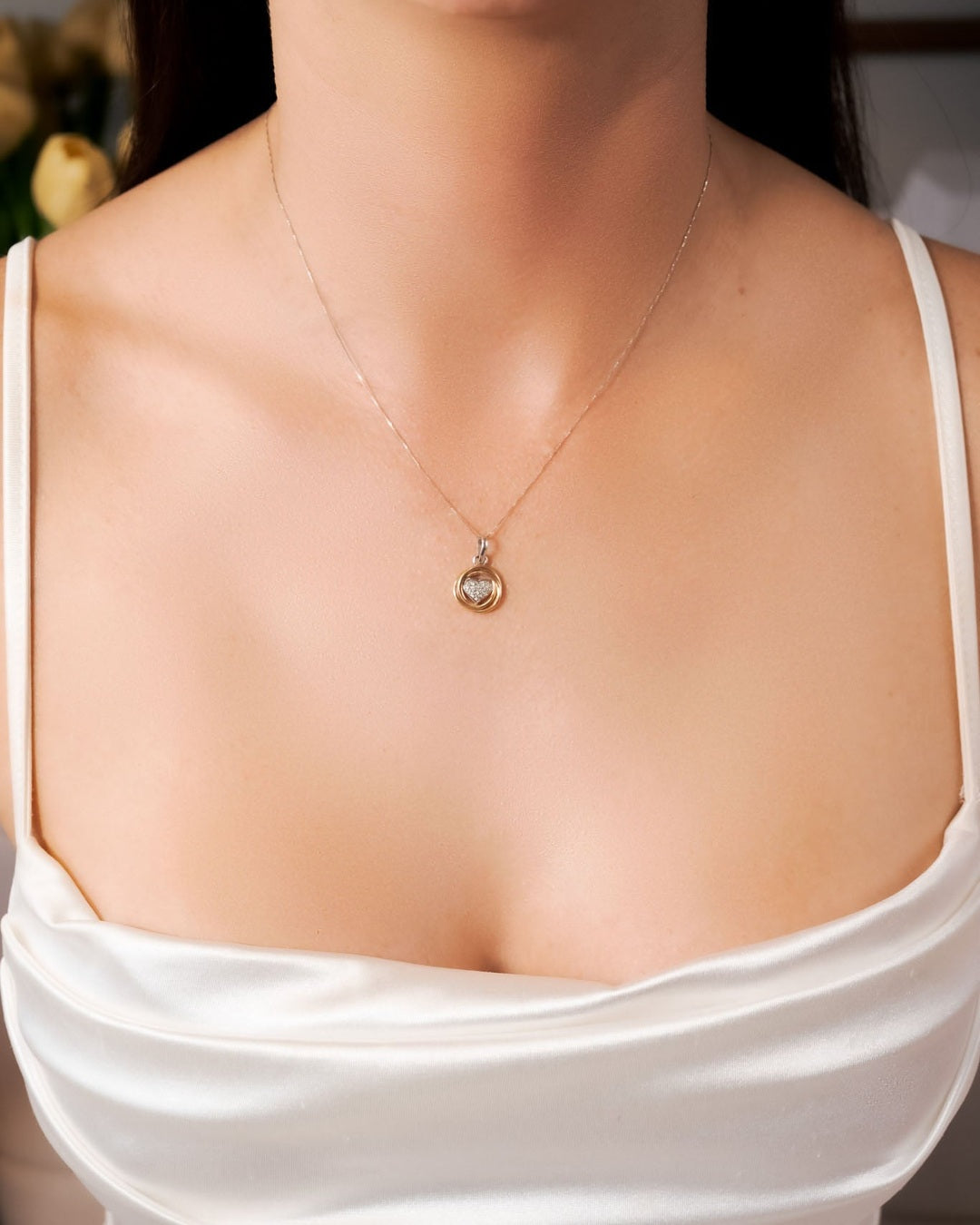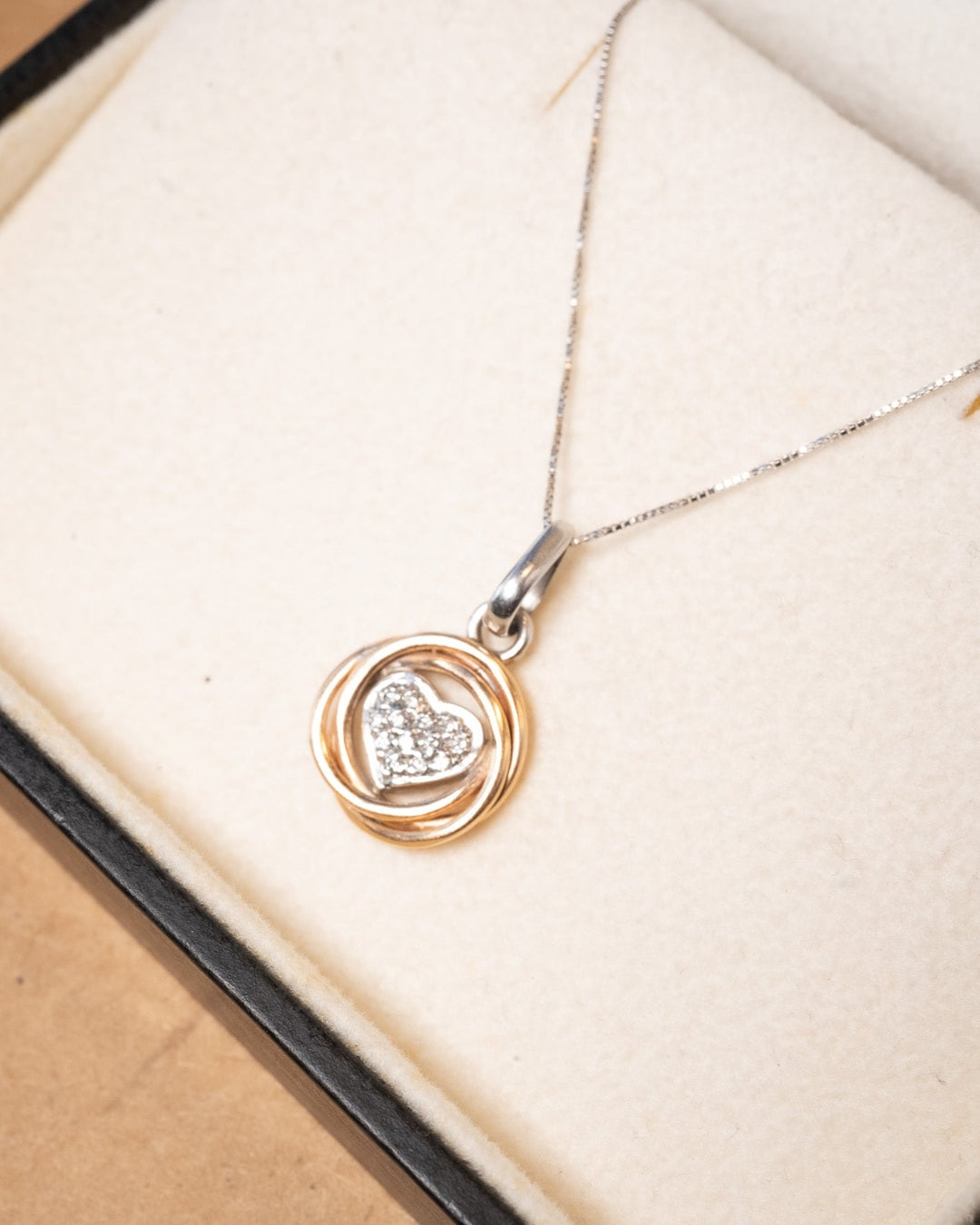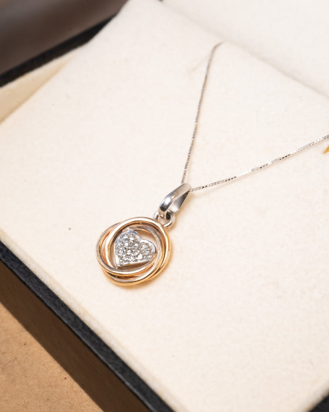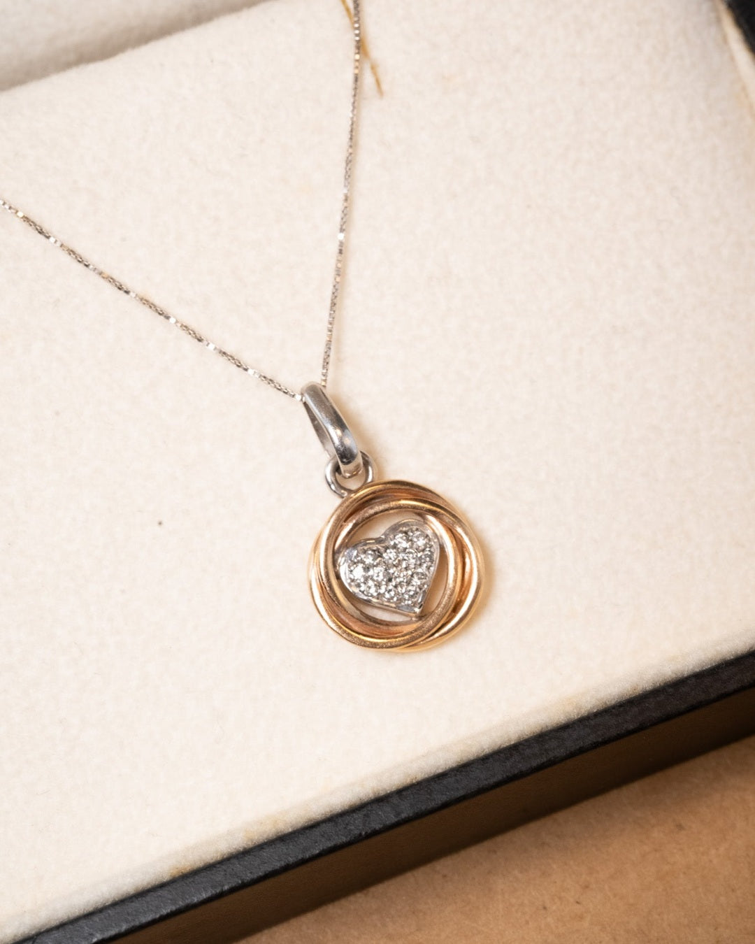 Pingente Coração de Ouro Branco e Rosê Cravejado de Diamantes