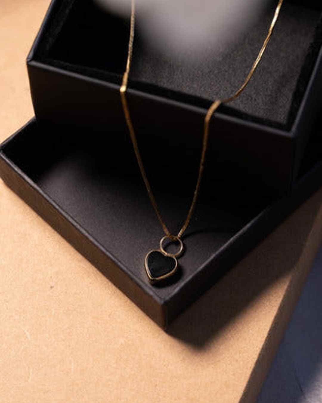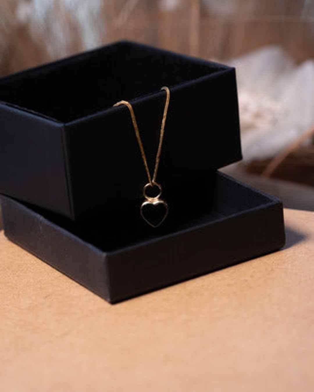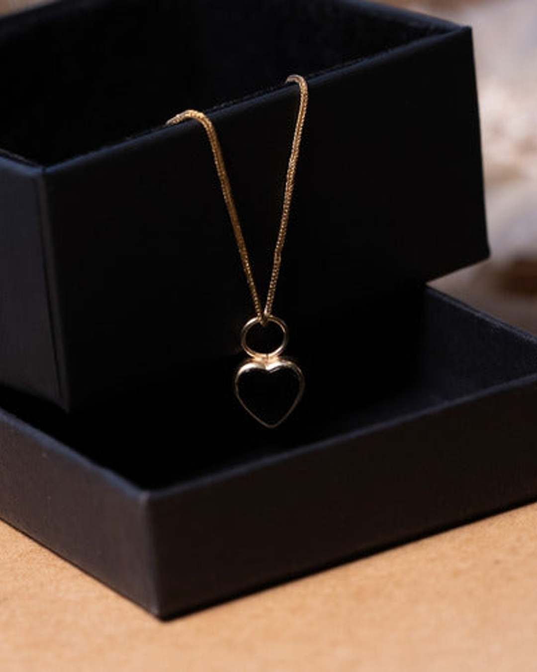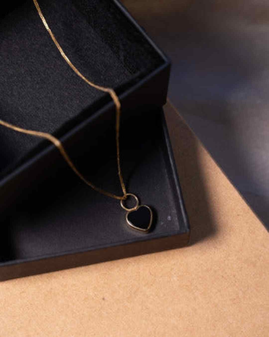 Pingente Coração Em Ouro Amarelo Com Ônix