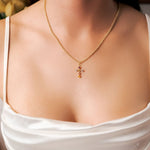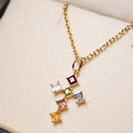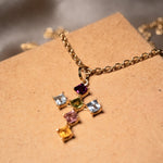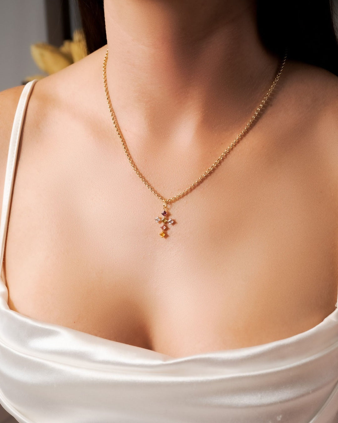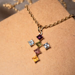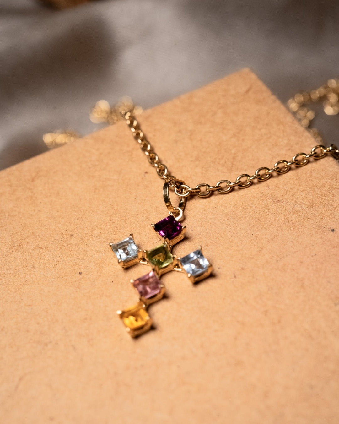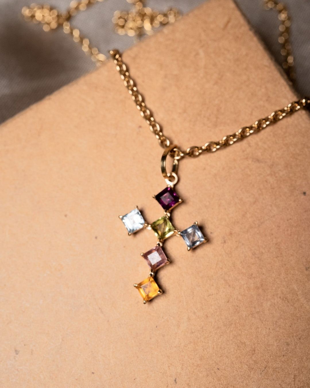 Pingente Cruz em Ouro Amarelo e Pedras Brasileiras