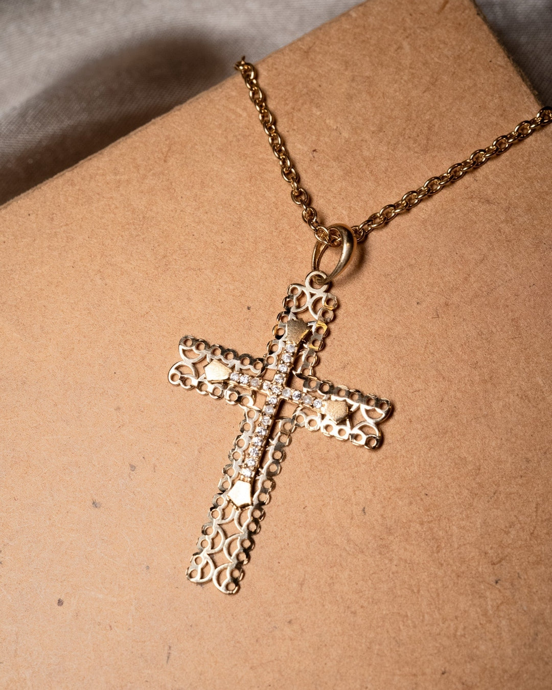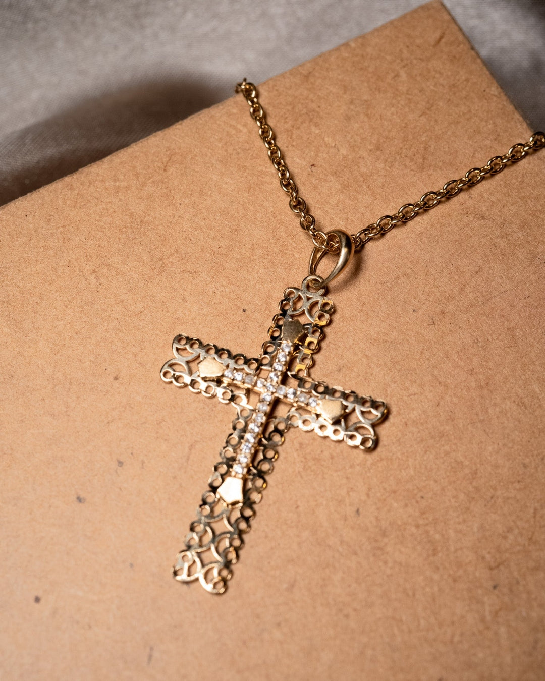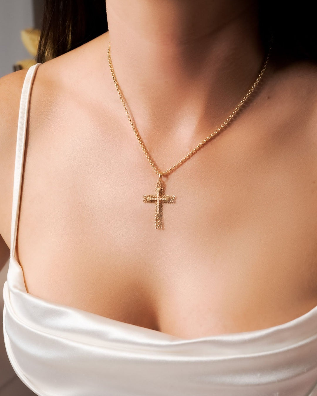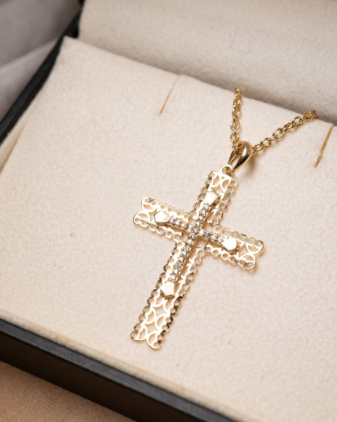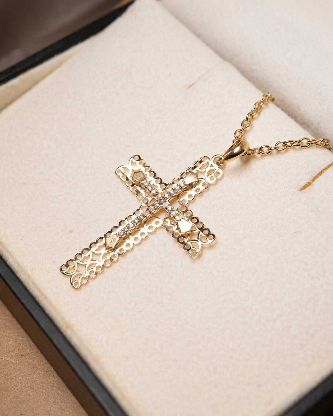 Pingente Cruz em Ouro Amarelo e Safiras Brancas