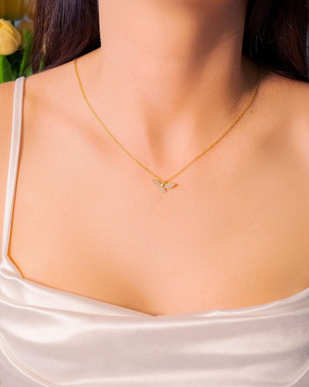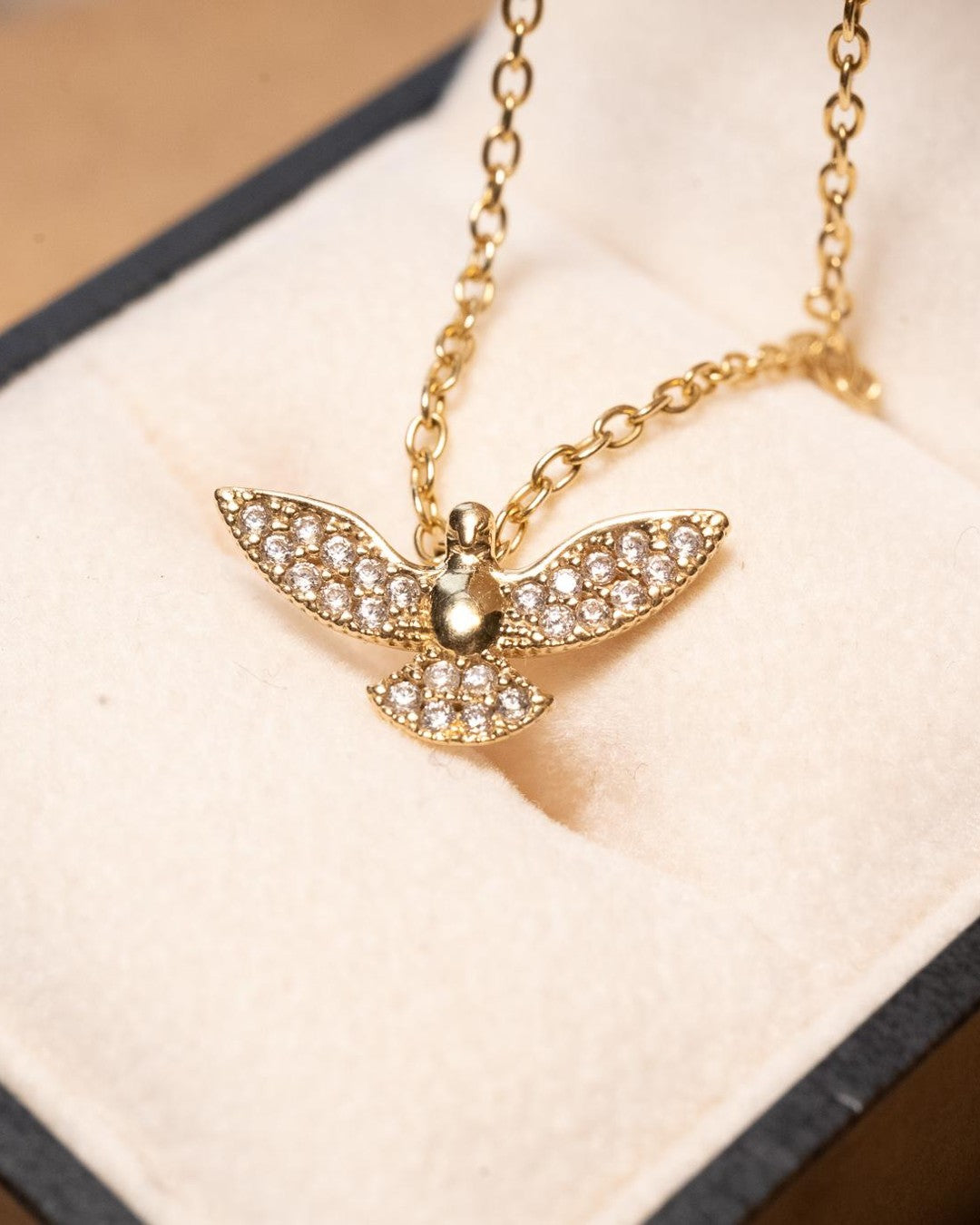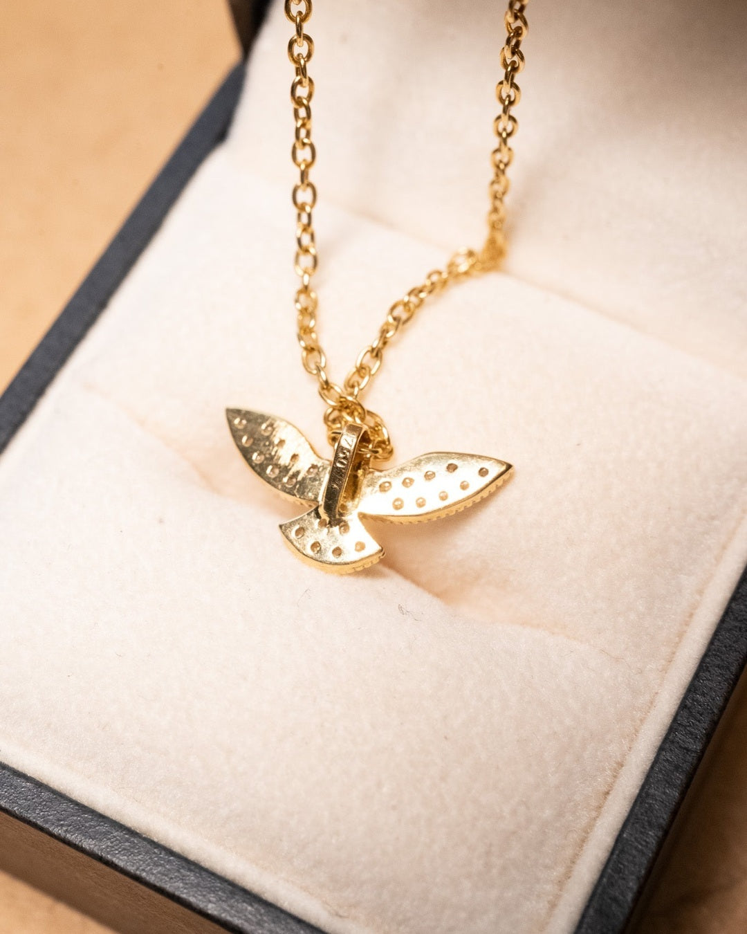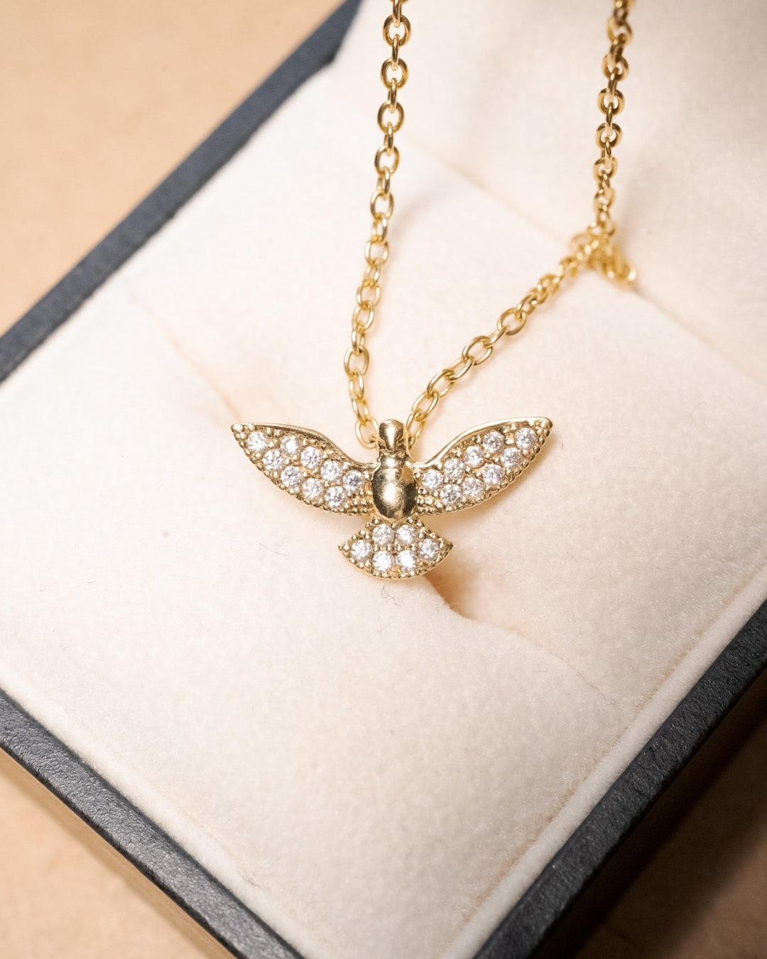 Pingente Espírito Santo em ouro amarelo com safiras brancas de 0.1 ponto.