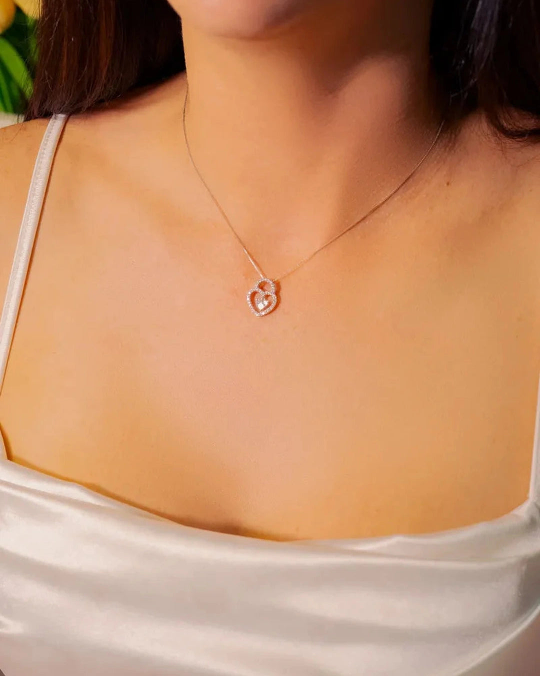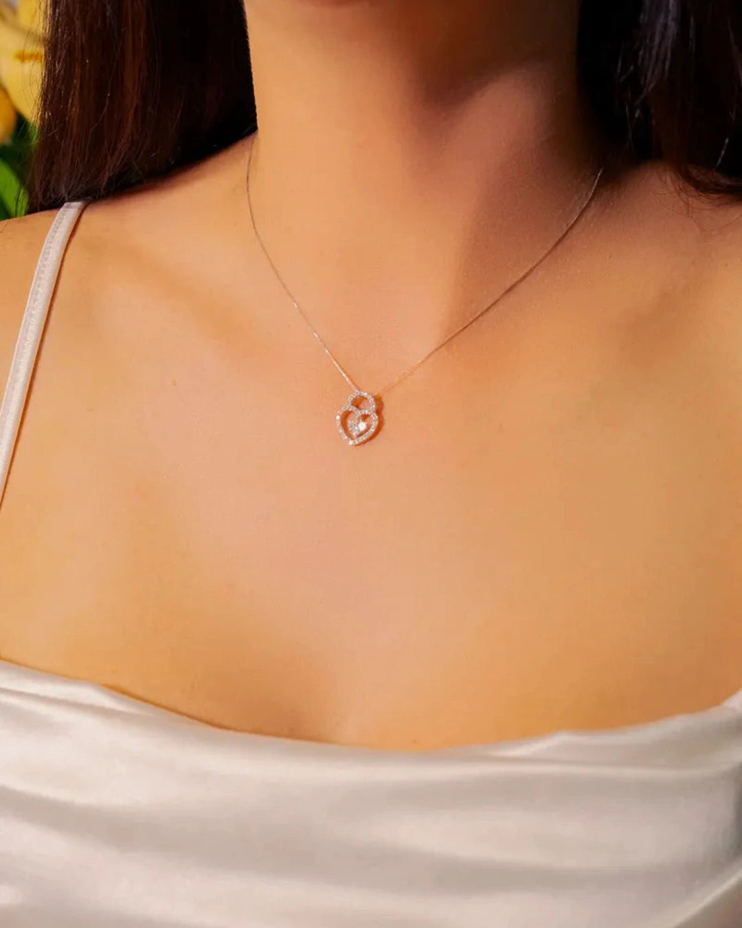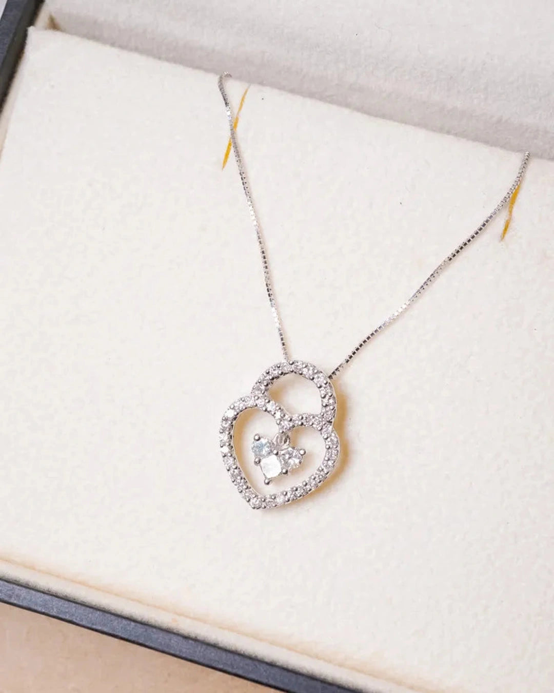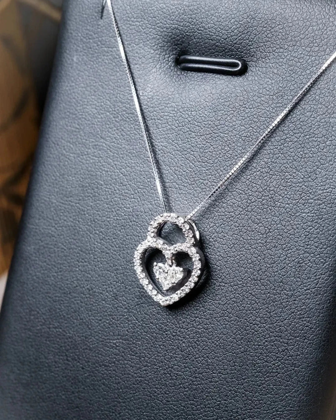 Pingente Lock Coração em Ouro Branco e Diamantes
