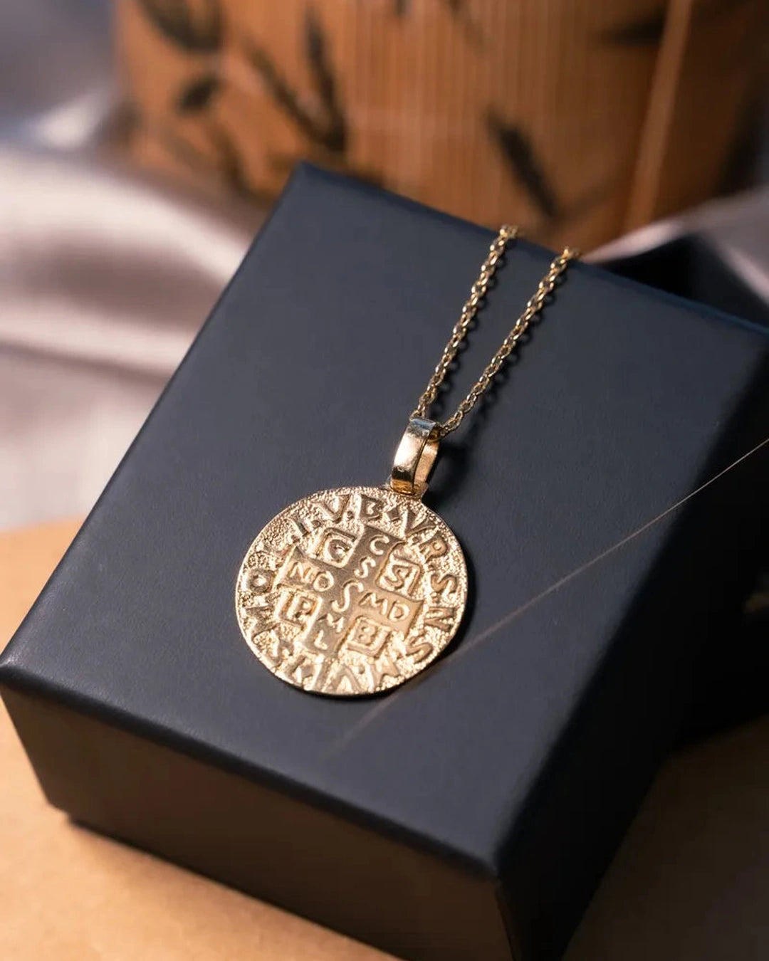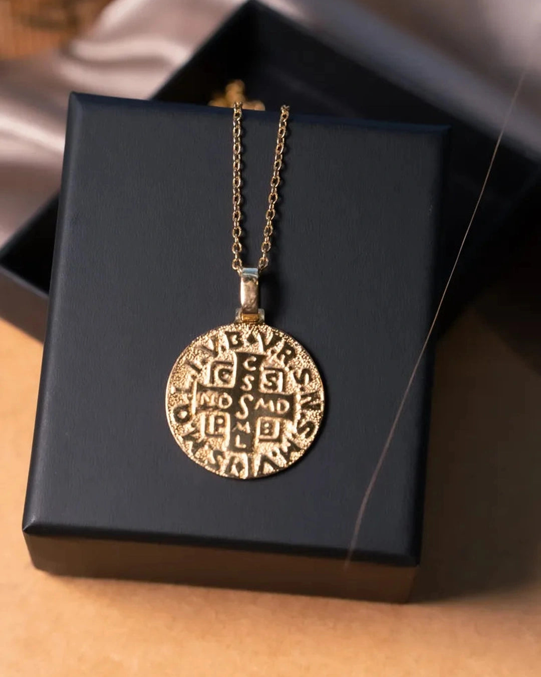 Pingente Medalha De São Bento Grande Em Ouro Amarelo