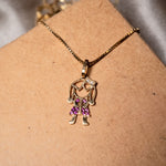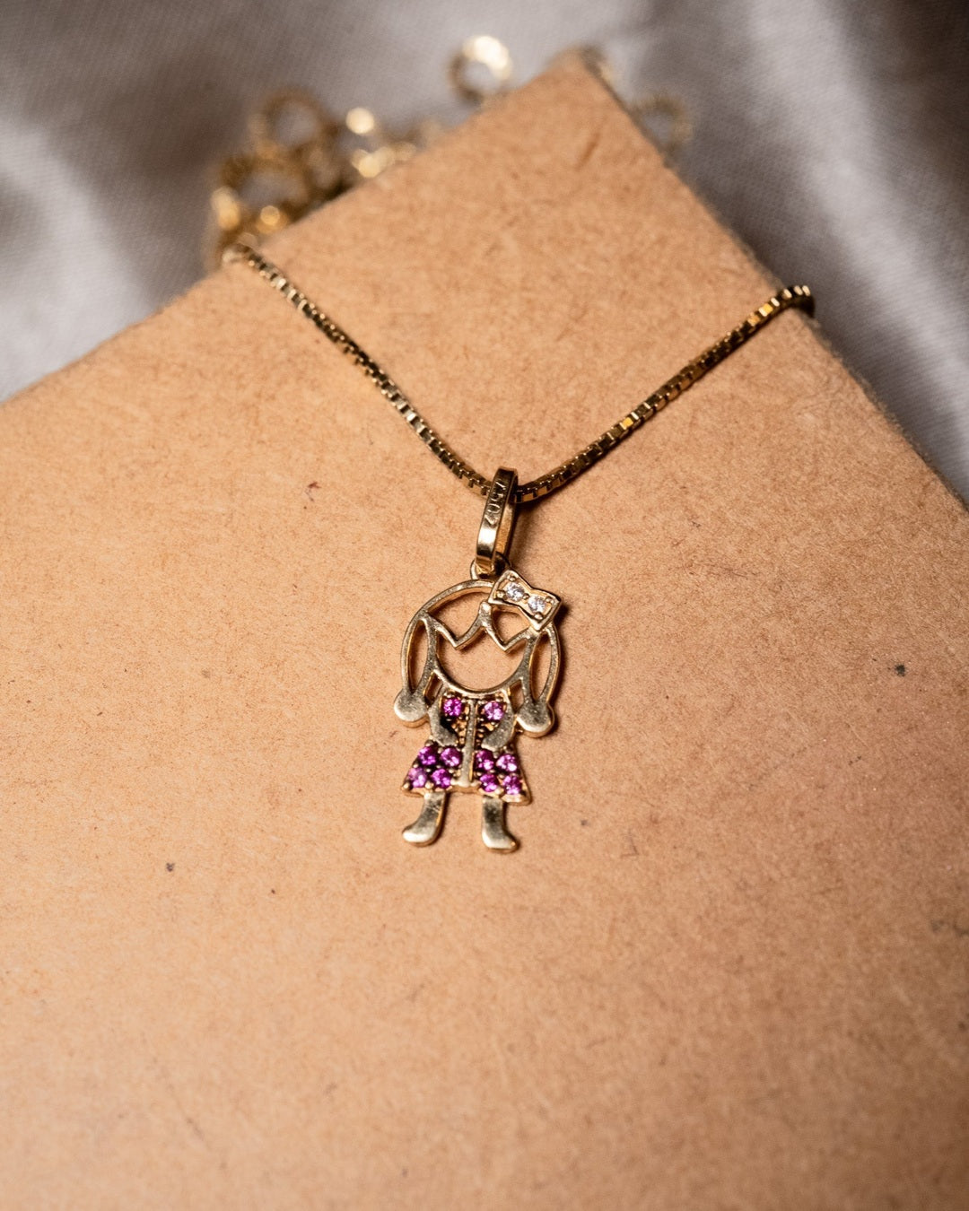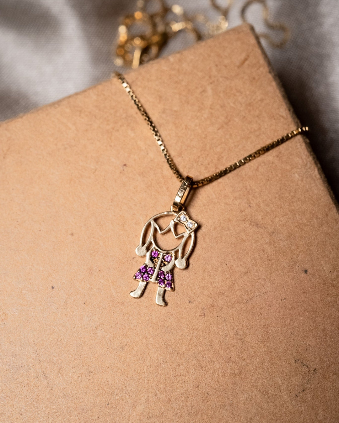 Pingente Menina em Ouro Amarelo, Rubelitas e Diamantes