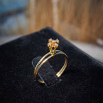 Anel Chuveirinho com design floral, elaborado em ouro amarelo. Possui aro tamanho 16 e é adornado com diamantes de 2 pontos, oferecendo um toque delicado e sofisticado. peso 1,1 gramas.