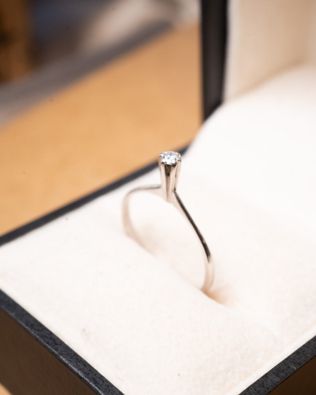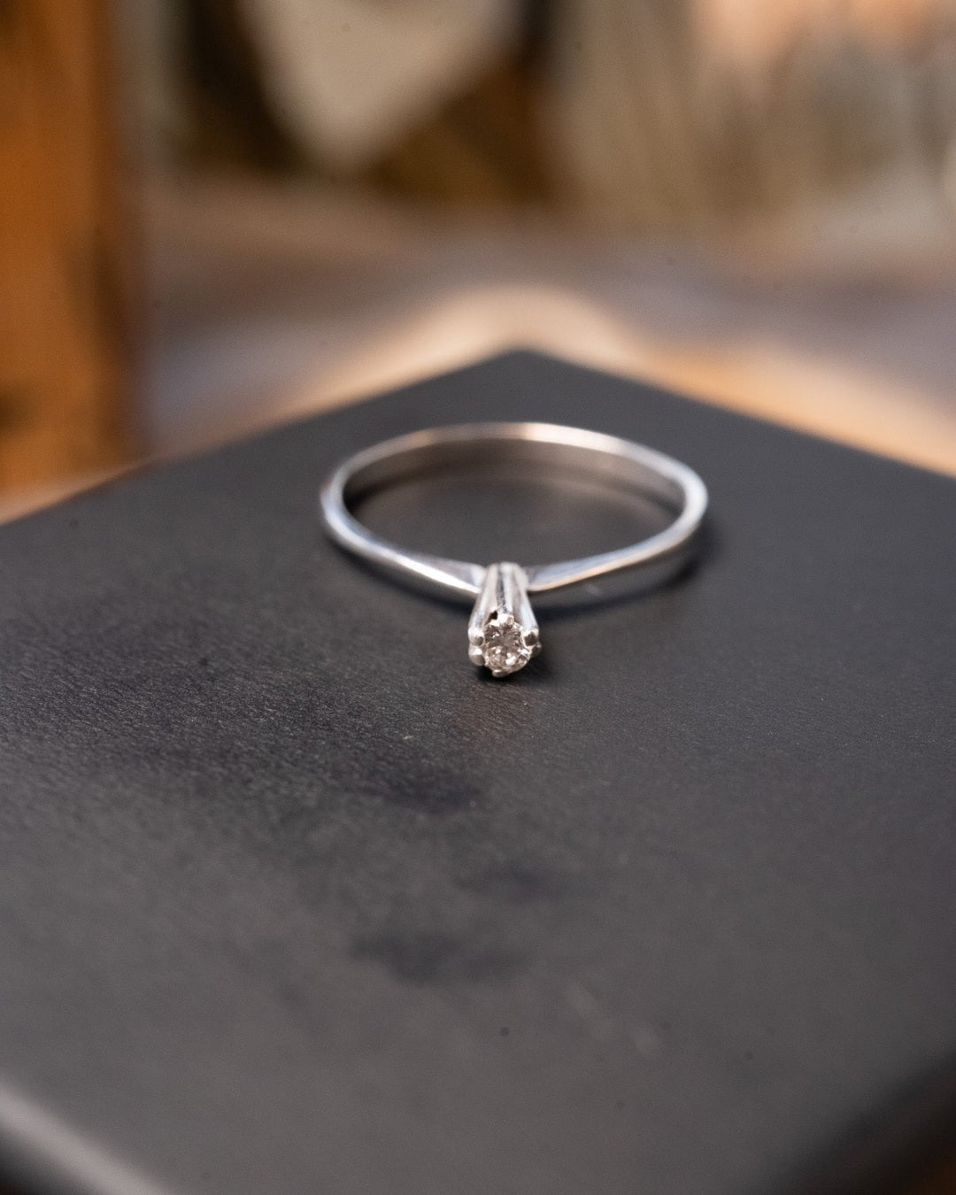 Anel Solitário De Ouro Branco Com Diamante 06 Pontos