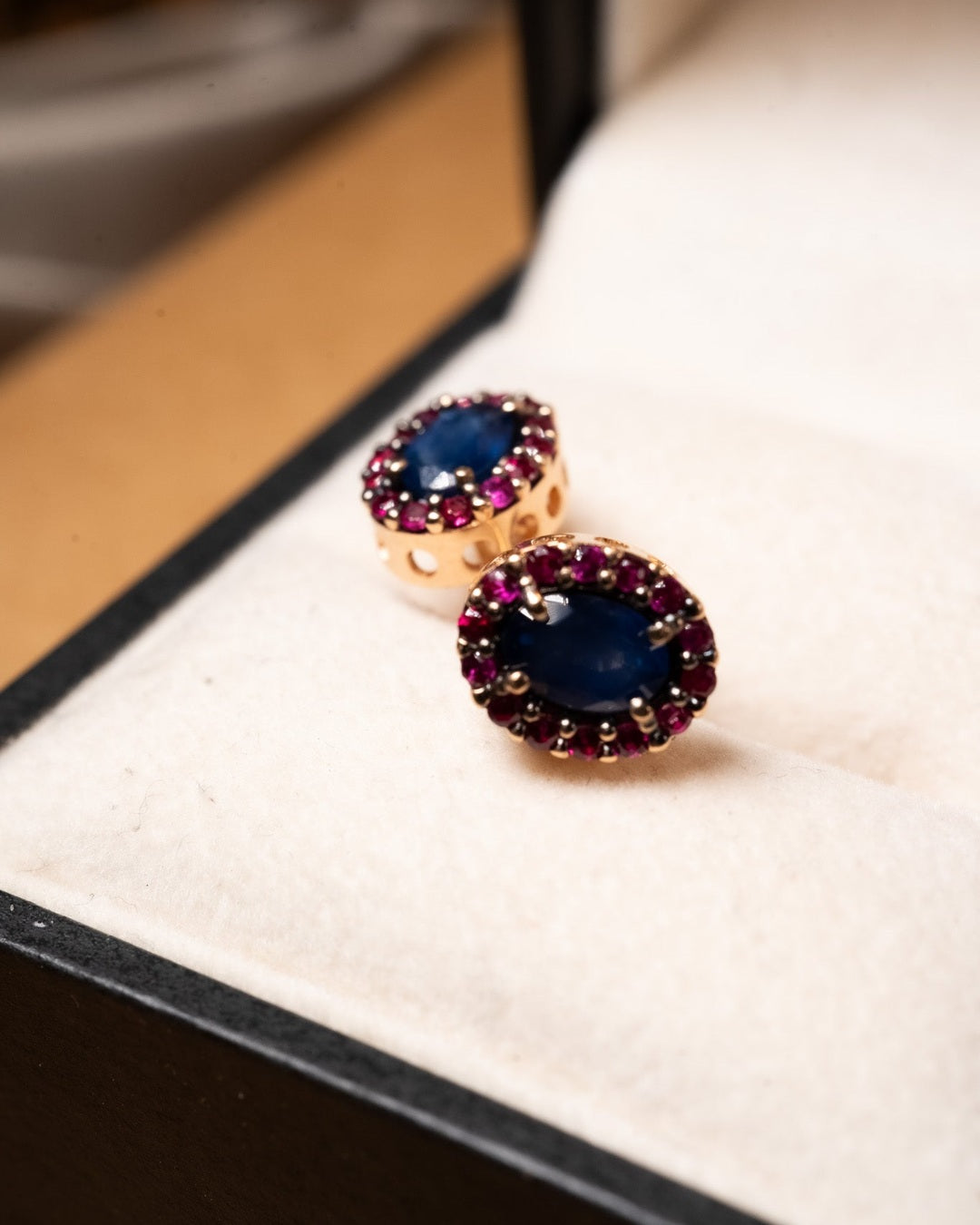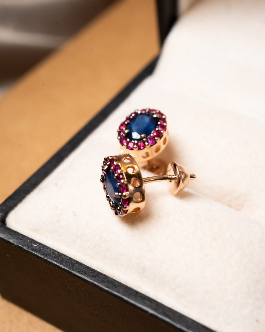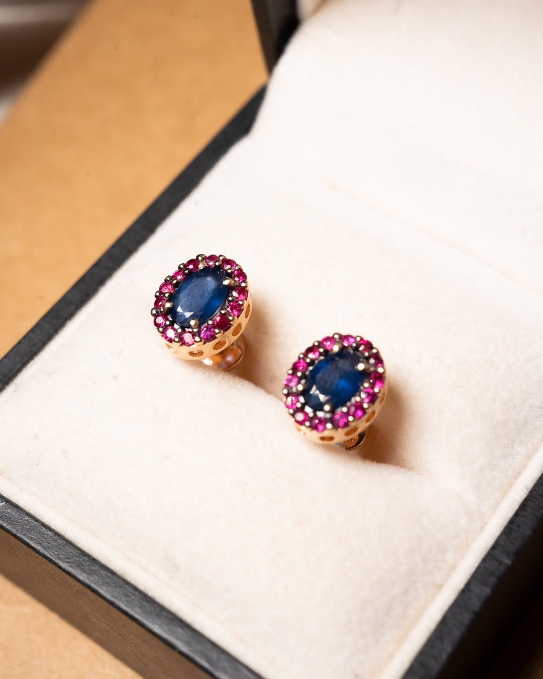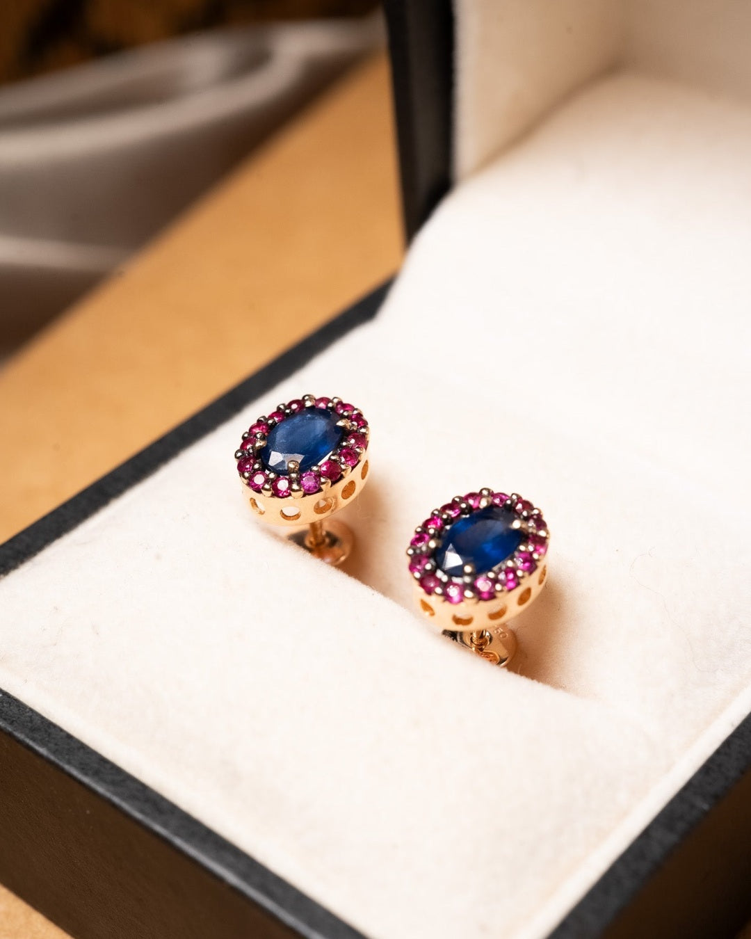 Brincos Vivara Classic Oriental Ouro Rosê Com Safiras E Rubis