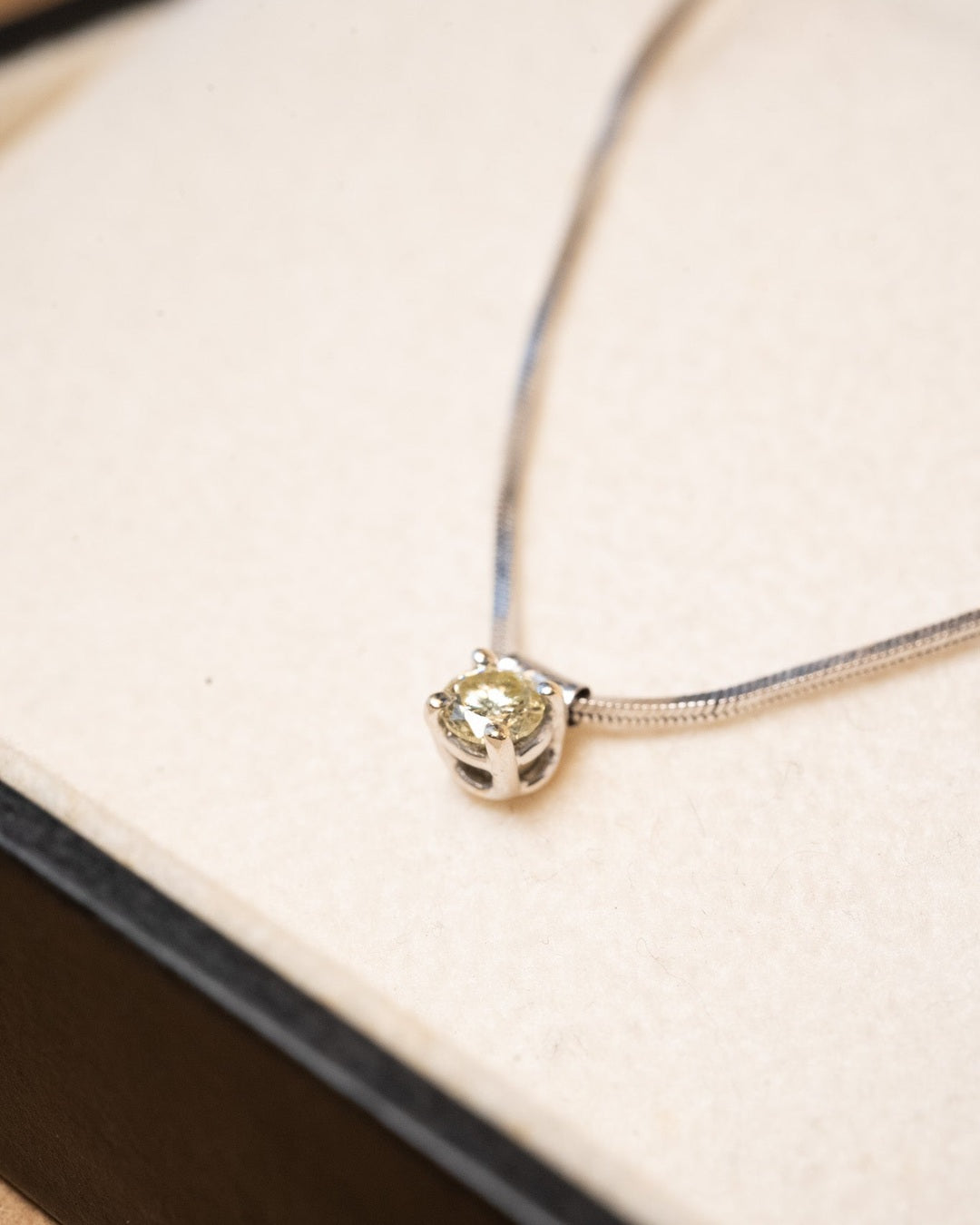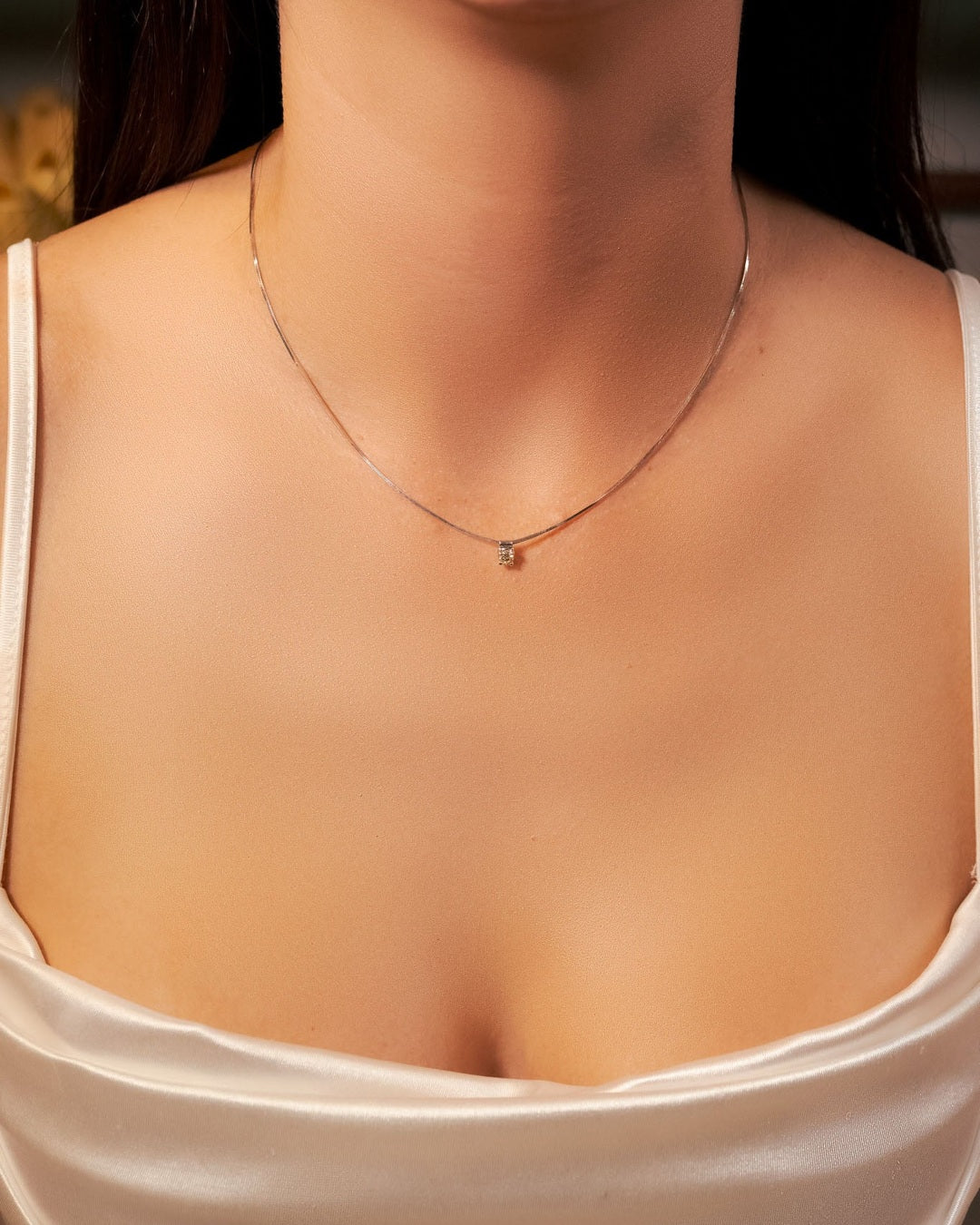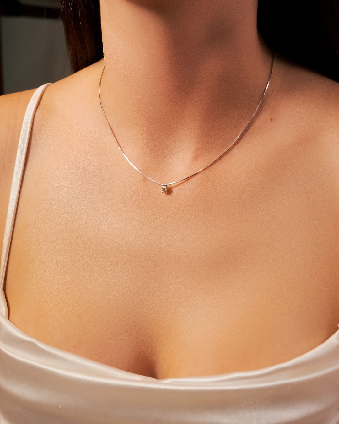 Cordão Laminado Ponto de Luz em Ouro Branco e Diamante