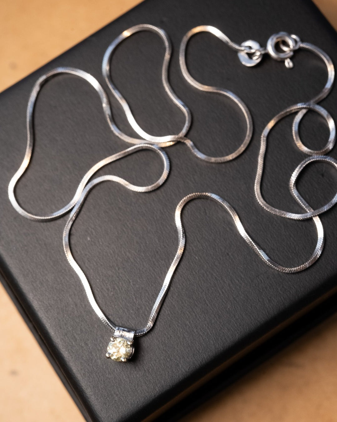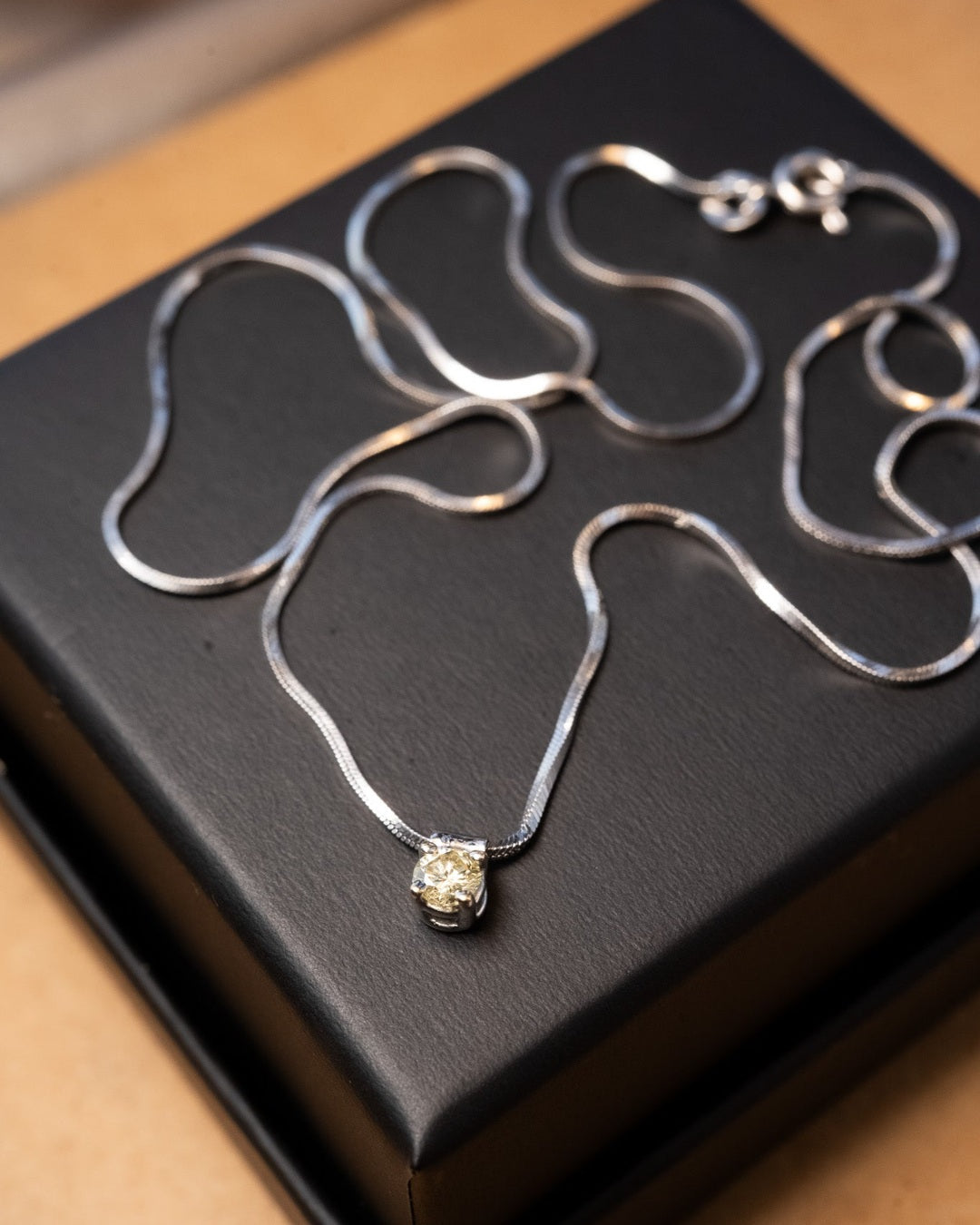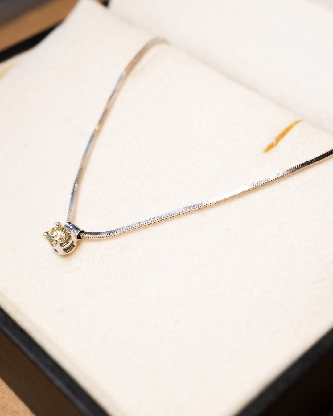 Título: Colar Cordão Laminado Ouro Branco e Diamante
