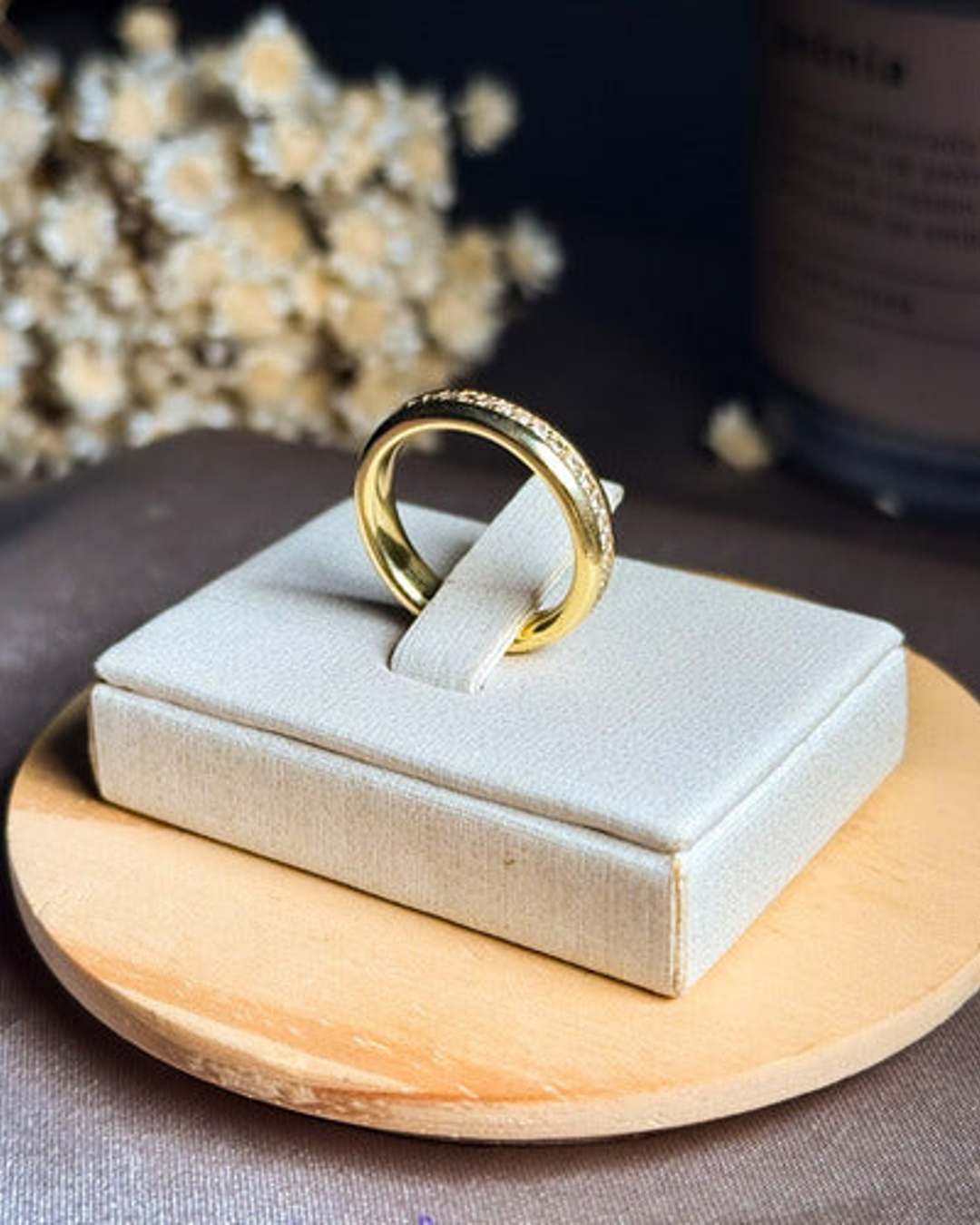 Anel Aliança Inteira Hstern Com Diamantes De 01 Ponto
