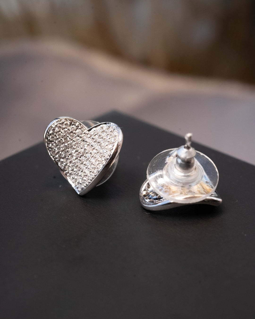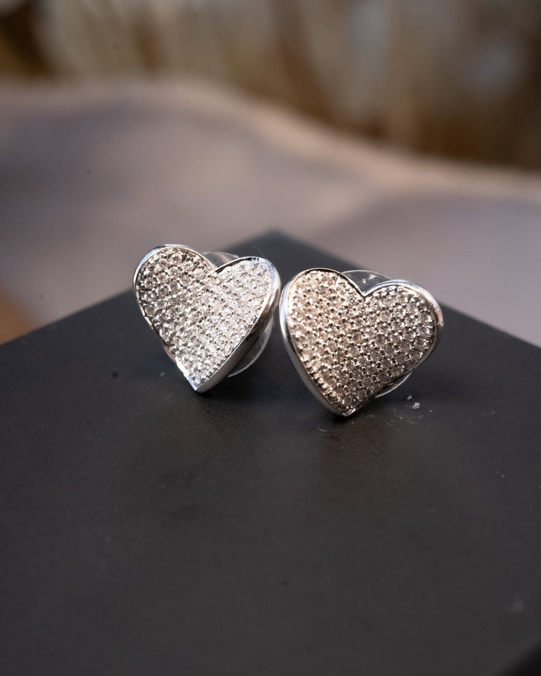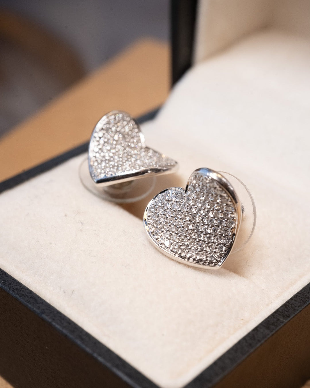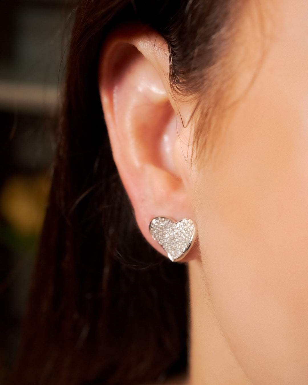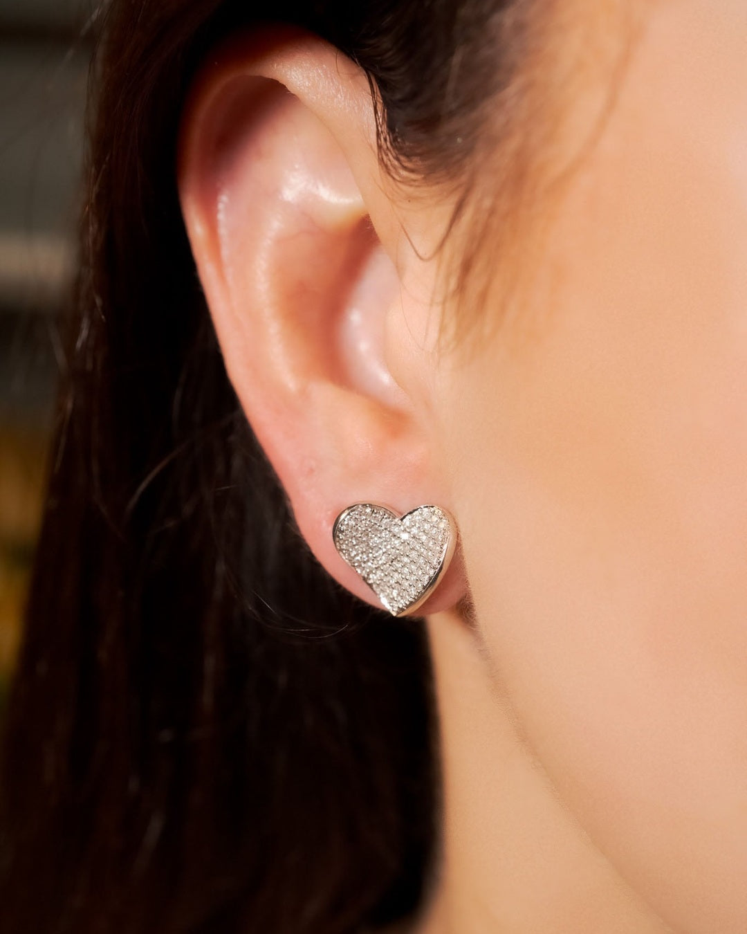 Brinco Coração Bold em Ouro Branco e Diamantes