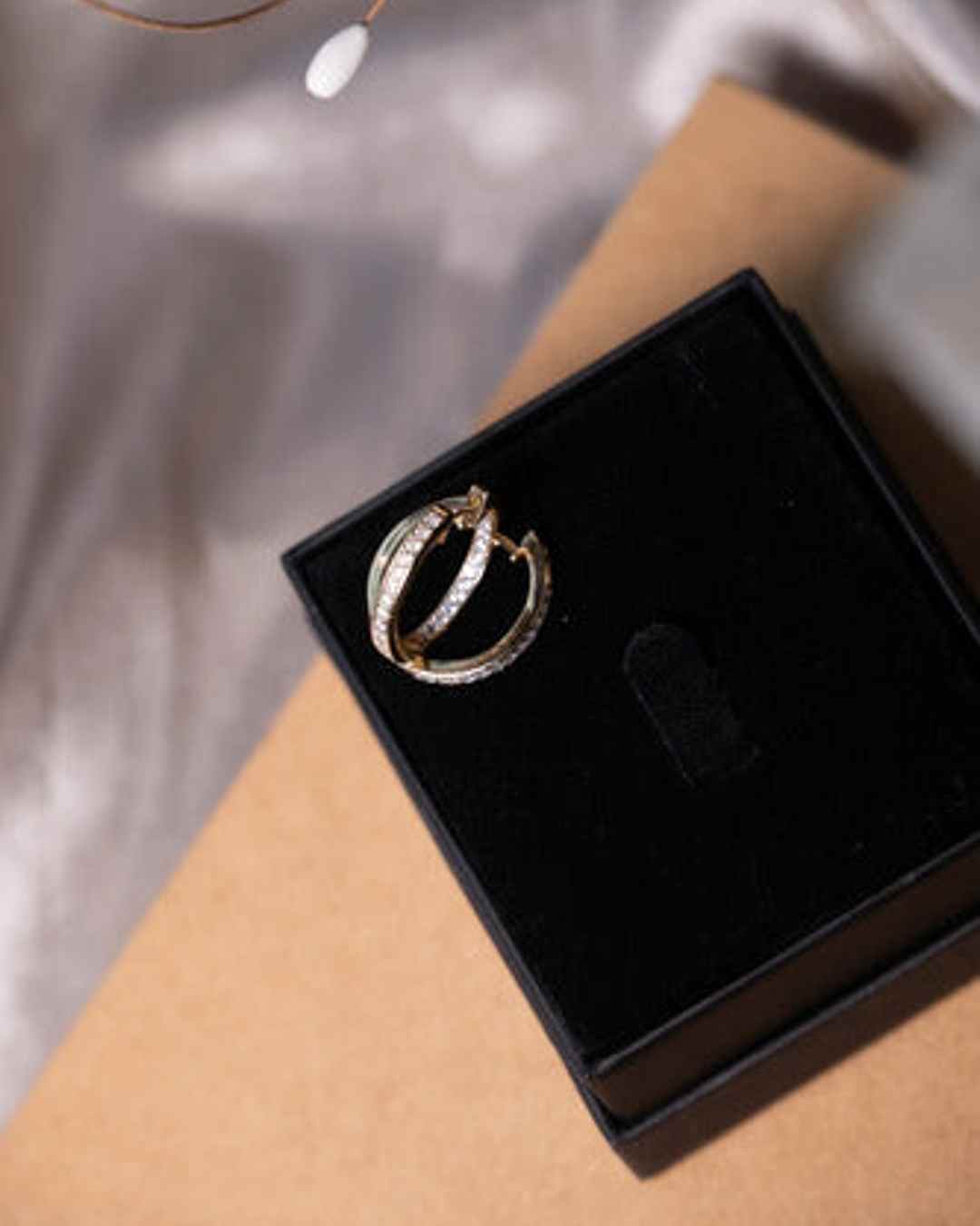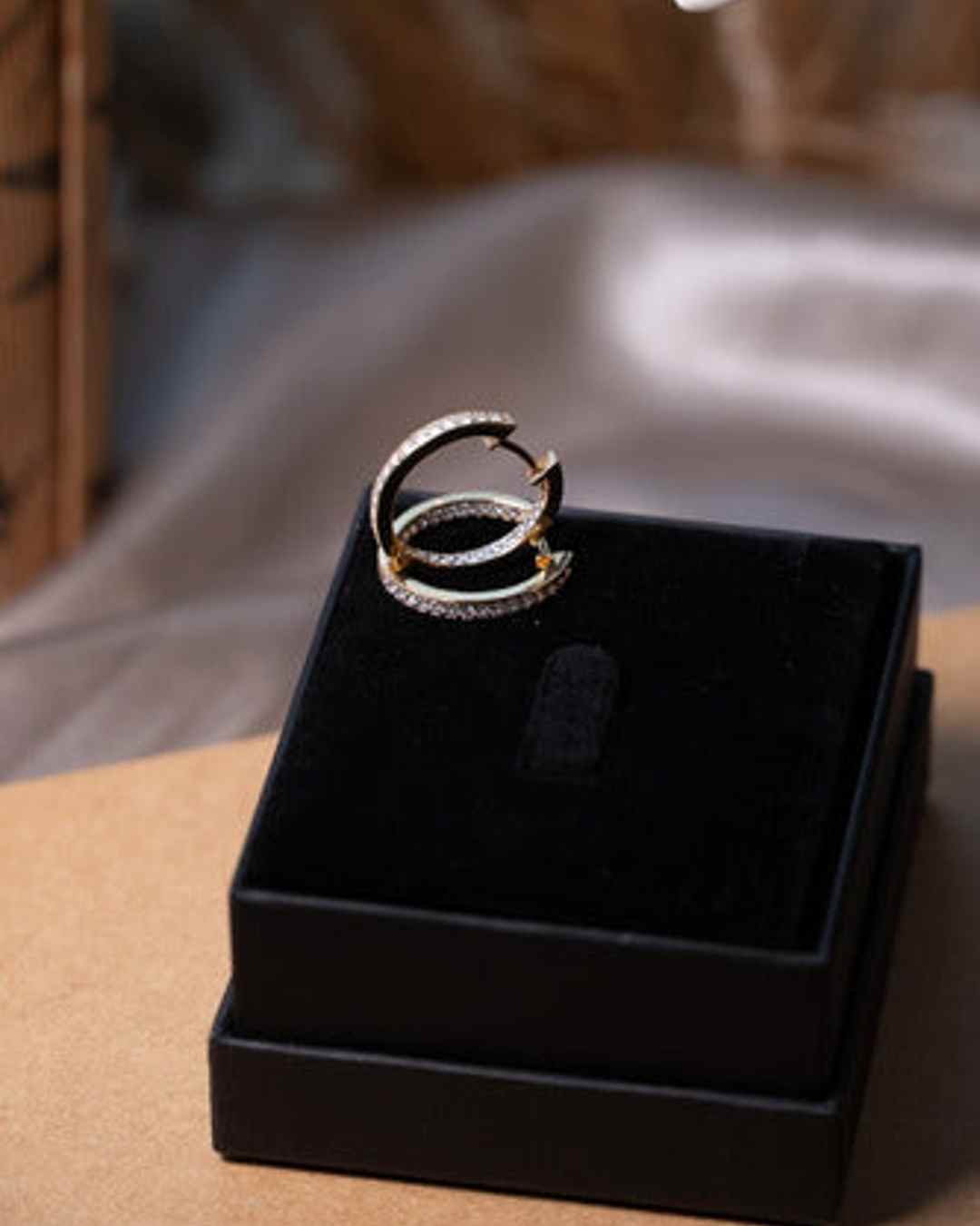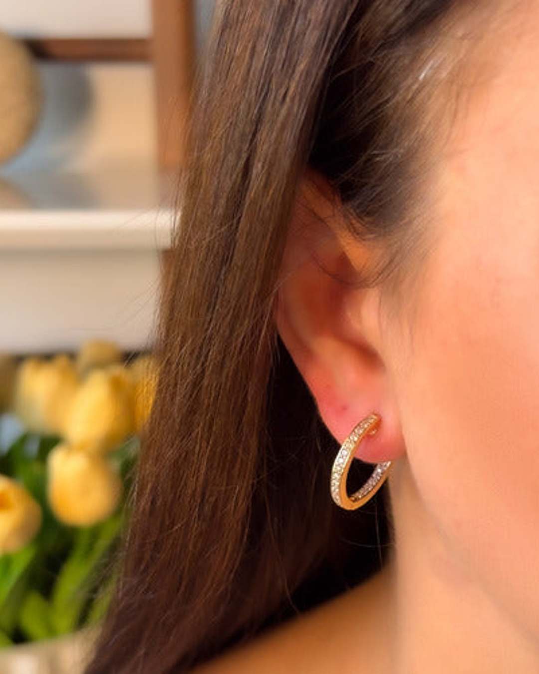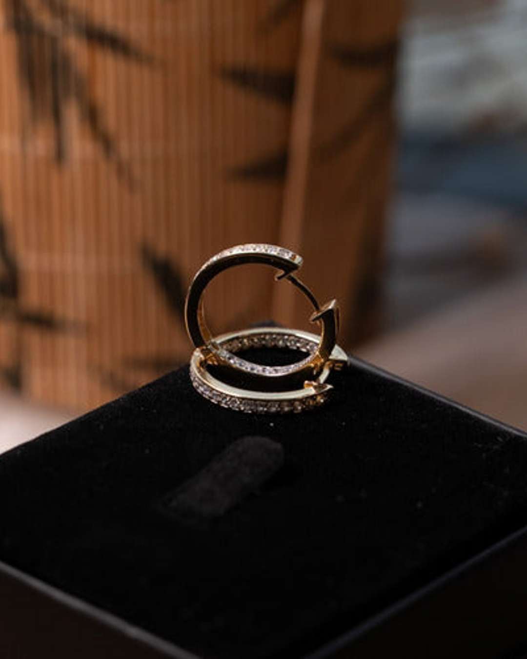 Brincos Argola Em Ouro Amarelo Com Safiras Brancas